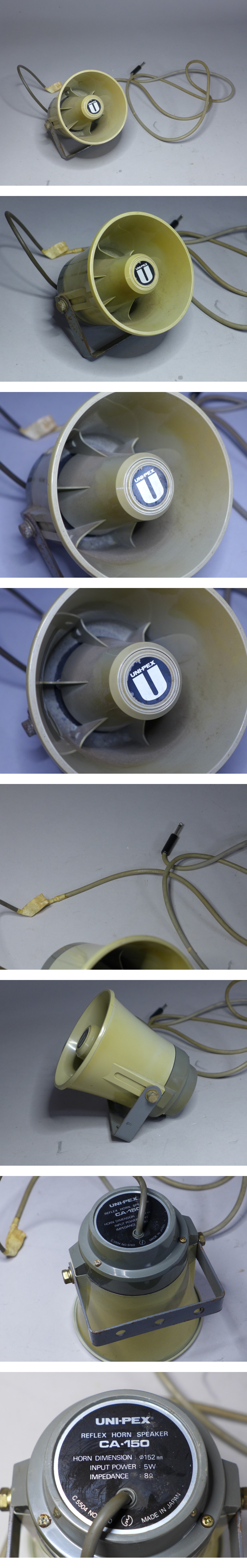 UNI-PEX スピーカー CA-150 現状品です。当方このような物に詳しくない為に詳細などは分かりかねます。状態は画像参照でお願いします。作動確認は出来ていません。その他不明の為ジャンク品となります。◇古い電気製品の為、必ず整備の上安全を確認してからご使用下さい。簡単に掃除はしておりますが古い物の為、埃汚れなあります。現状品になりますので写真をご確認の上御入札お待ちしています。※他にも古い無線機関係を多数出品しております。是非ご覧ください。★★★★★★★★★★★★★★★★★★★★★★★★★最近、悪質な入札者が多く非常に迷惑をしております。新規IDや「非常に悪い・悪い」の評価の多い方の入札はお断りさせて頂きます。 仮に入札があった場合でも、発見次第入札を削除させて頂く場合がございます。