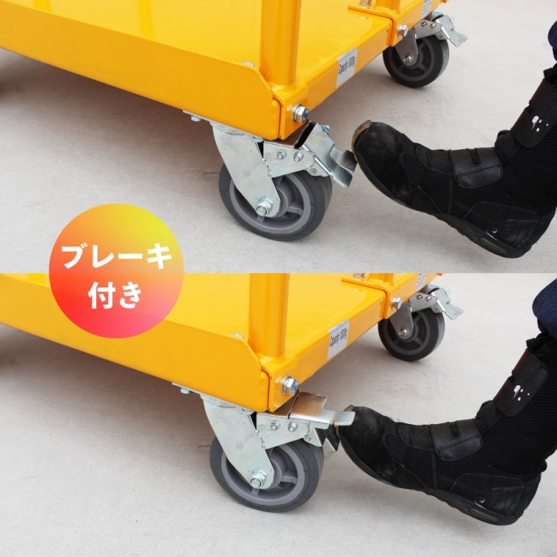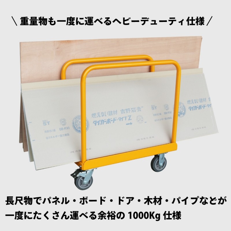 ●重量物も一度に運べる1000kgヘビーデューティ仕様 ●長尺物でパネル・ボード・ドア・木材・パイプ・他…一度にたくさん運べる余裕の1000Kg仕様のブレーキ付き運搬台車です ●両サイドと中央に柵付きで資材の分別が可能で汚れがつきにくく乗せたまま作業ができるすぐれもの ●中央の柵は取り外し可能で大物も運搬できます ●底板の厚みは4.0mmと裏側の両端には120mm幅と中央には40mm幅のリブ補強で本体・重量38.5kgと安定感を増しました ●資材積載時の移動はなんとΦ150mmの大型車輪ベアリング入りのためスムーズな取り・回し旋回が可能です ※砂利道など不安定な道での走行はできません ●片側2輪(自在車輪)のみブレーキ付きとなります |