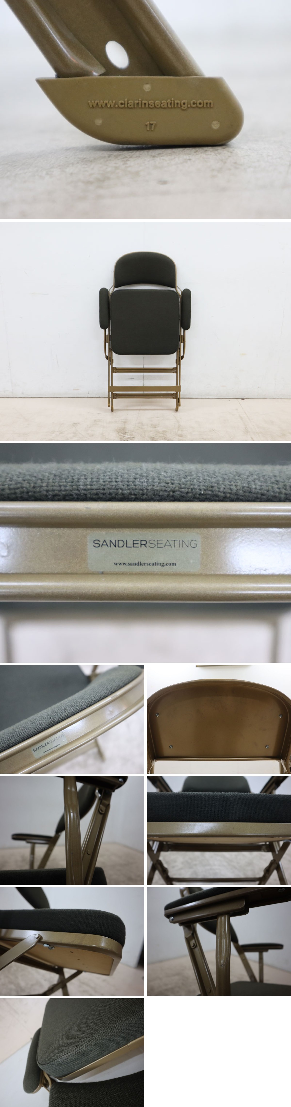 【商品説明】 1925年に米国クラリン社で製造が始まったフォールディングチェアです。 マディソンスクエアガーデンを始め、スタジアム・学校など、様々な場所で使用されています。 平行でない地面でも荷重をかけると4本すべての脚が接地する構造になっており、安定を確保するというすばらしい機能を持っています。 また、折りたたんだ時の薄さは抜群で、美しく収納できます。 脚部分にはラバーを使用しているため、床にキズが付きにくくなっています。 こちらはクッション、アーム付きのタイプです。弾力があるクッションなので、ダイニングチェア・デスクチェアなどにも最適です。 |