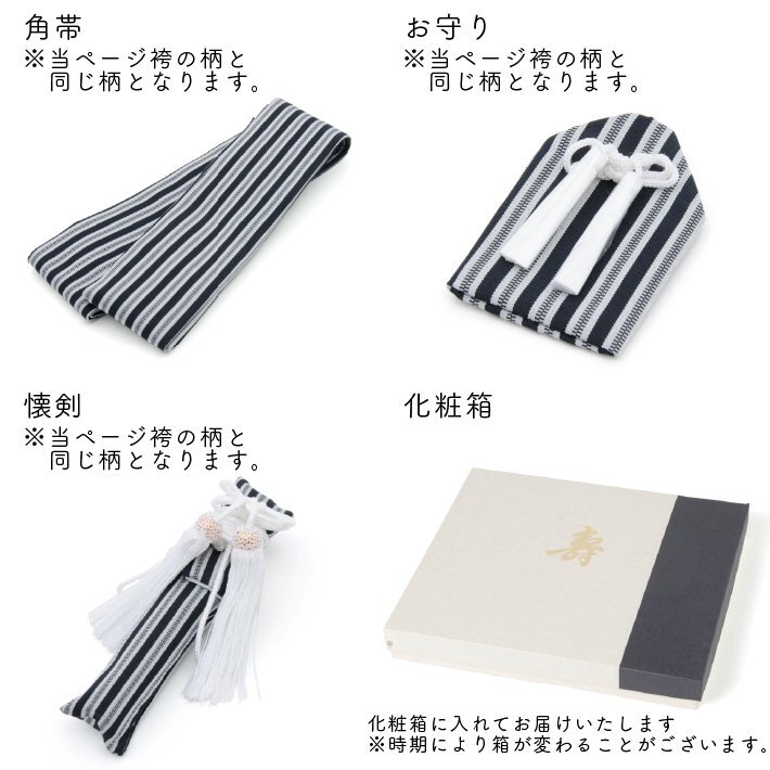 | 商品説明 | 五歳用の羽織袴のフルセットです。 七五三やお正月、その他のお祝い事を着物姿でお楽しみください。 豪華な13点フルセットですので、買い足すものがなく着用できます。 (1)羽織 (2)着物 (3)長襦袢 (4)袴 (5)角帯 (6)雪駄 (7)扇子 (8)懐剣 (9)羽織紐 (10)お守り (11)足袋 17~18cm ※足袋のサイズは17~18cmとなっておりますが、事前にご連絡いただければ、別のサイズに変更も可能です。 お気軽にお問合せください。 その他の足袋のサイズは、13~14cm ・ 15~16cm ・ 19~20cm ・ 21~22cmとなります。 (12)腰紐(3本) (13)化粧箱 |