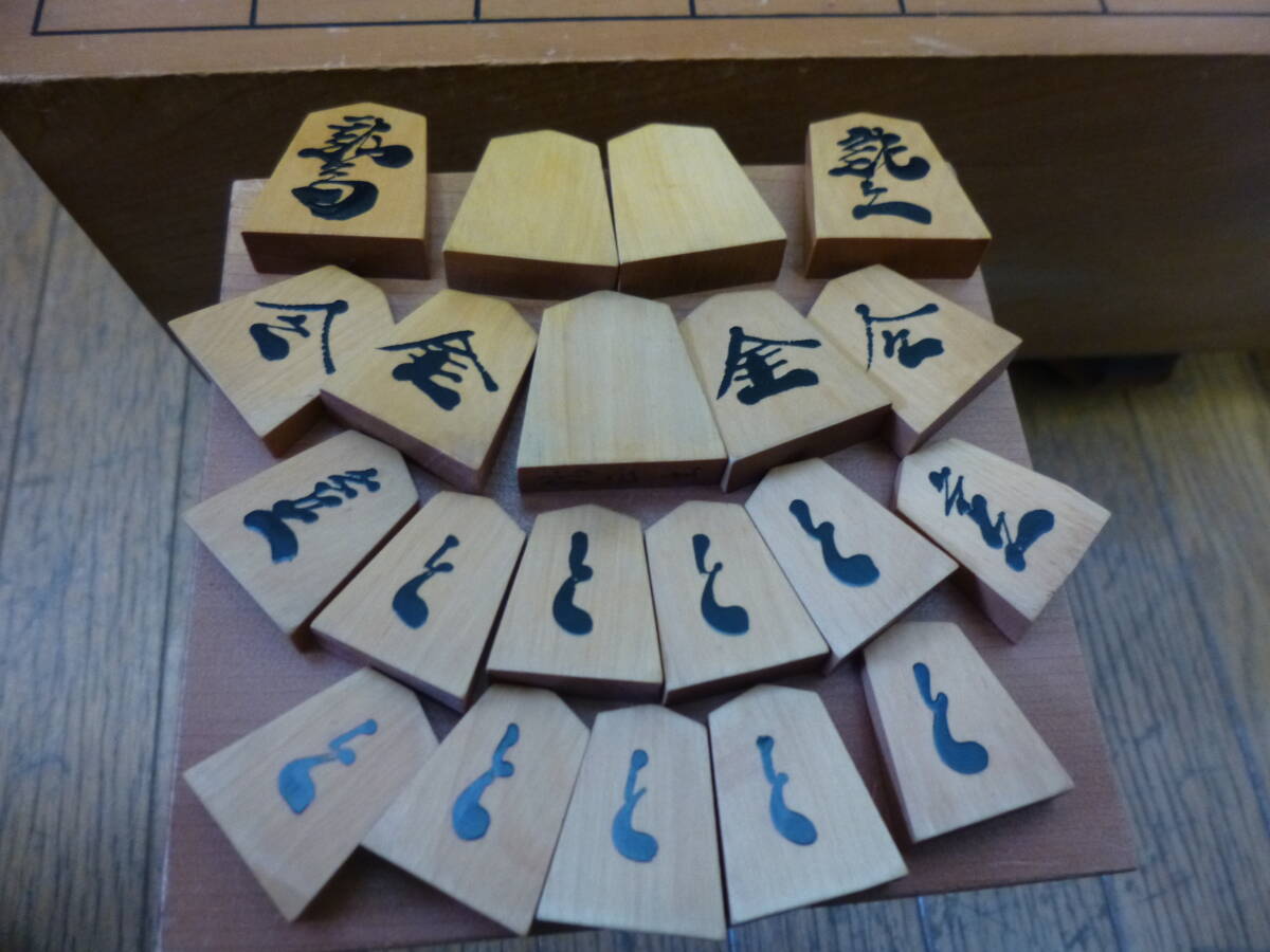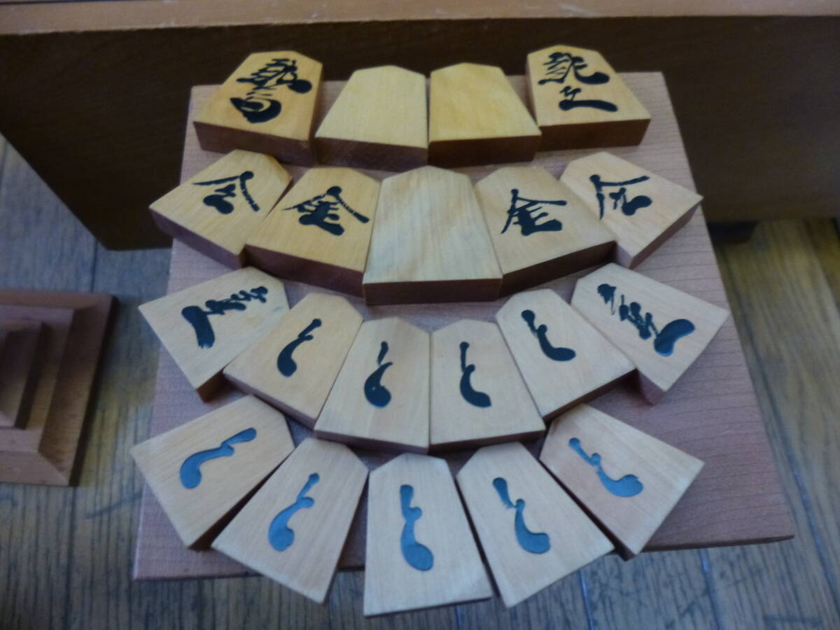 | 買い受け品です。 玉将の底面に銘がありますが、達筆すぎて読めません。 画像にてご判断下さい。 駒は彫りでは無く、漆か何かで浮いた感じになっています。 将棋盤のサイズは36㎝×32.5㎝ 高さ21㎝ 盤の厚さだけだと11.5㎝で、駒置台のサイズはおおよそで12㎝×11.5㎝ 高さ20㎝となります。 今の所目立ったヒビは見受けられませんが、結構使われていたみたいで盤面に傷が多々あります。 いわゆる年季が入っている将棋盤です。 駒や置台は割と綺麗なほうだと思いますが、使用品となりますので、擦れや細かい傷などはご了承ください。 |