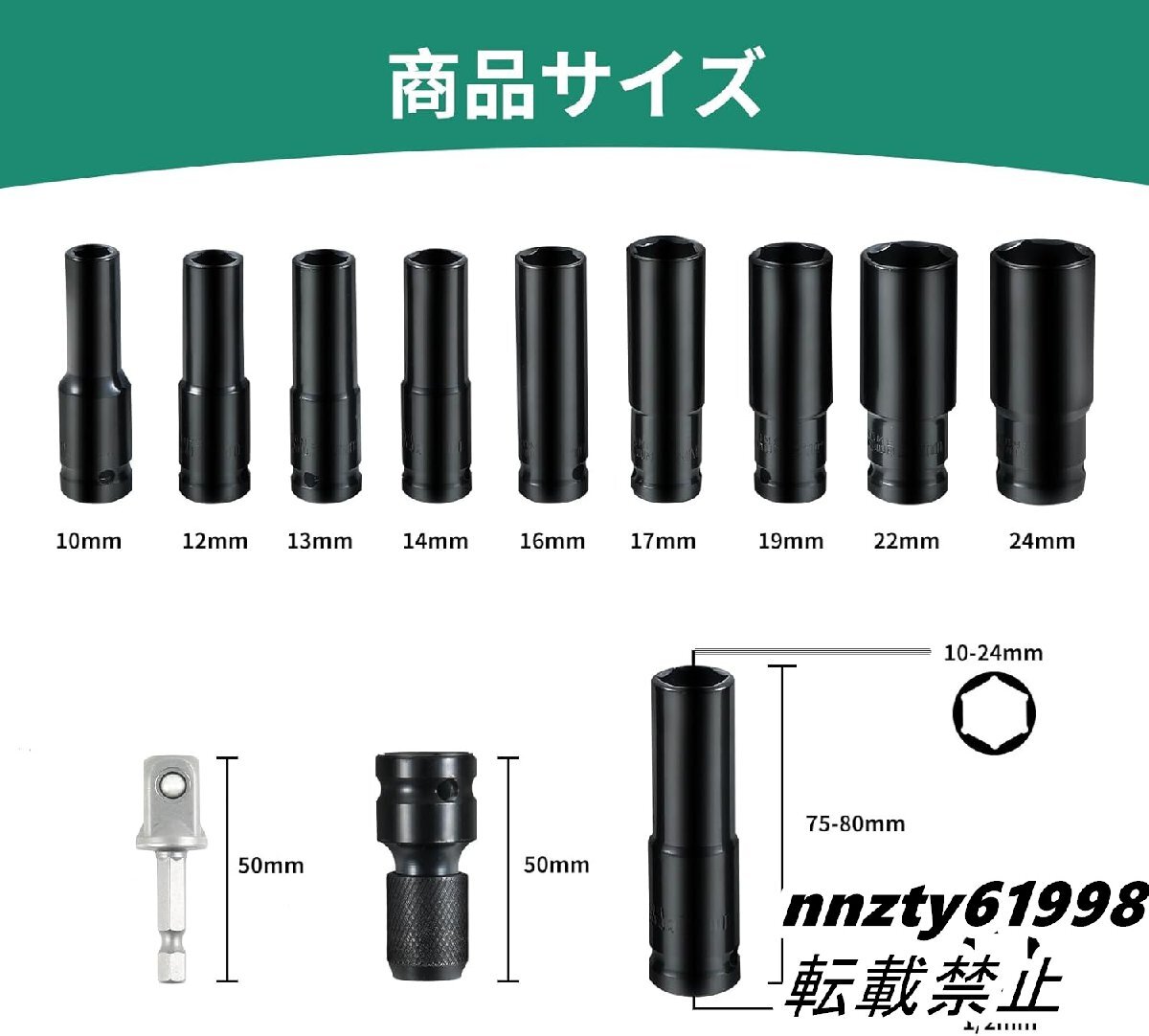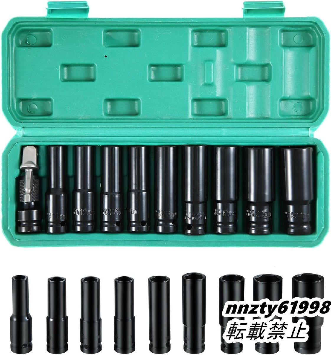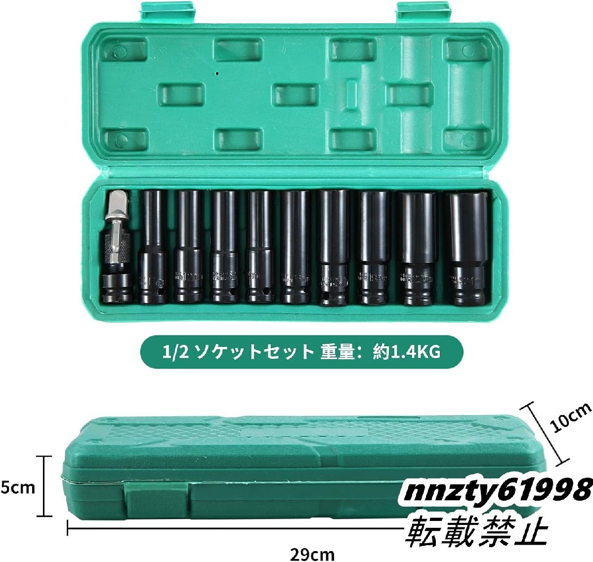 11本セット 1/2 12.7mm ディープソケット ソケットレンチ ロングソケット 六角ソケットセット 六角 工具 DIY 収納ケース付き