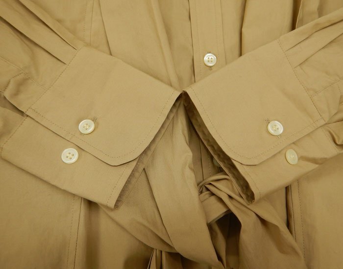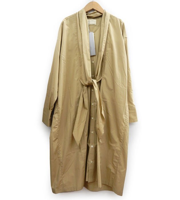 【コンディション】 未使用で綺麗な状態です。 【カラー】ベージュ系 【素材】 コットン 【サイズ】 ONE SIZE 【着丈】 約109cm 【肩幅】 約61cm 【身幅】 約68cm 【袖丈】 約53.5cm 参考価格:\28,000- |