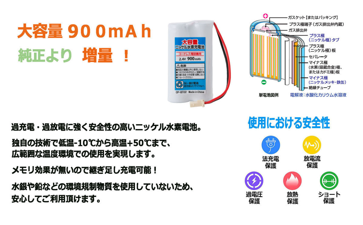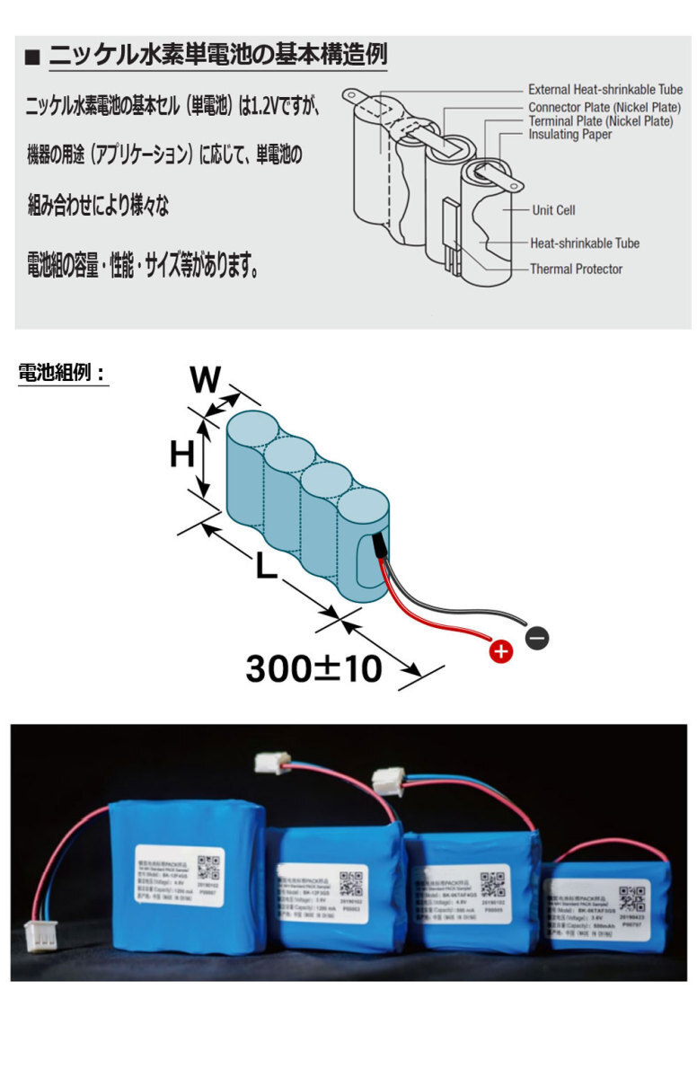 | 公称電圧/容量 | 2.4V / 900mAh |