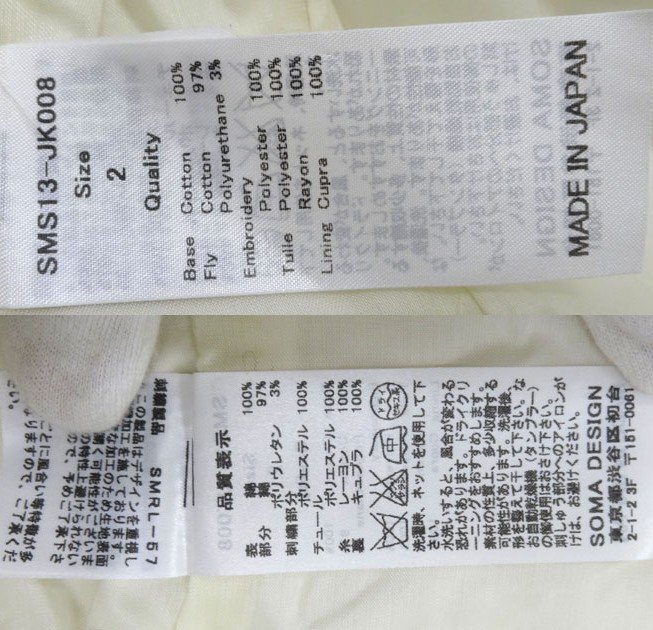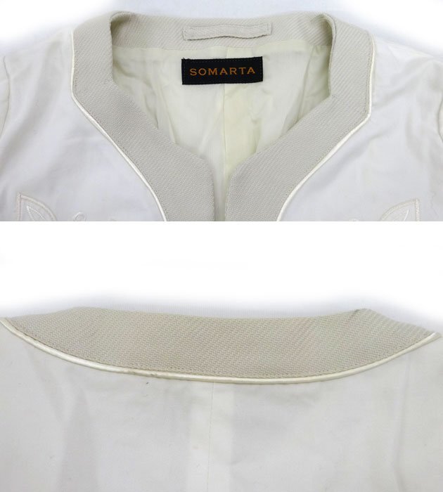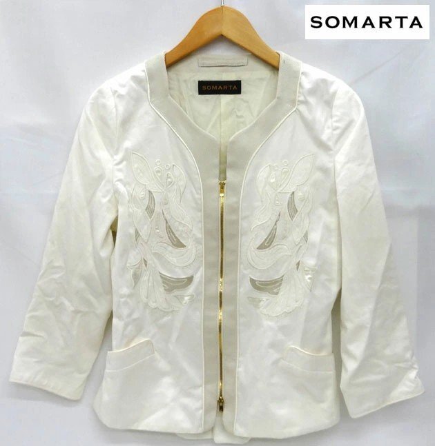 | SOMARTA ソマルタ 刺繍デザイン カラージャケット FB0652 サイズ2 白 ホワイト 七分袖 |