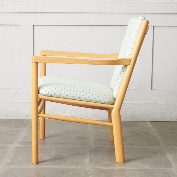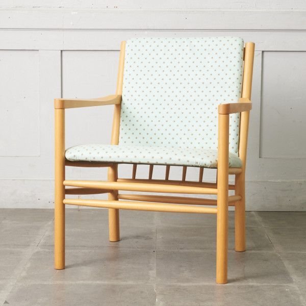ビーチ無垢材を使用した、背もたれのスポークやシルエットなど高品位のディテールを備えたチェア。FISBA社による可愛らしい張地も魅力的。シンプルなフォルムながら北欧ならではの機能性と普遍的な美しさが際立つ上質なお品です。