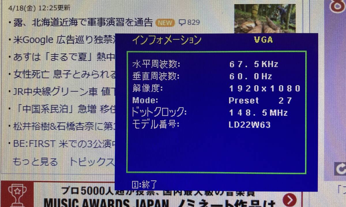 EPSON エプソン 21.5インチ ワイド TFT 液晶 ディスプレイ モニター LD22W63 42518ym PC パソコン ゲーム