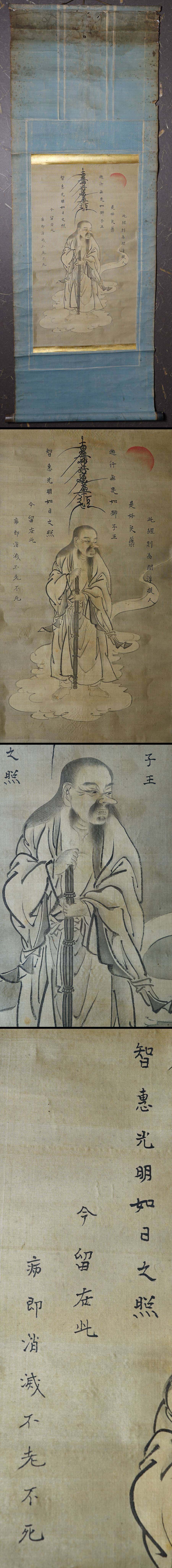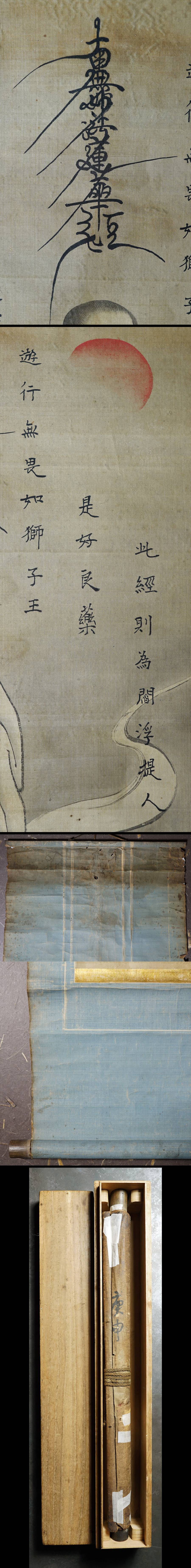 【サイズ】:表具が縦 125cm、横 43cm 本紙が縦 56cm、横 31.5cm 【本紙】:絹本。 【 箱 】:箱あり。 【状態】:表具は要補修。本紙は時代の傷みあり。 |