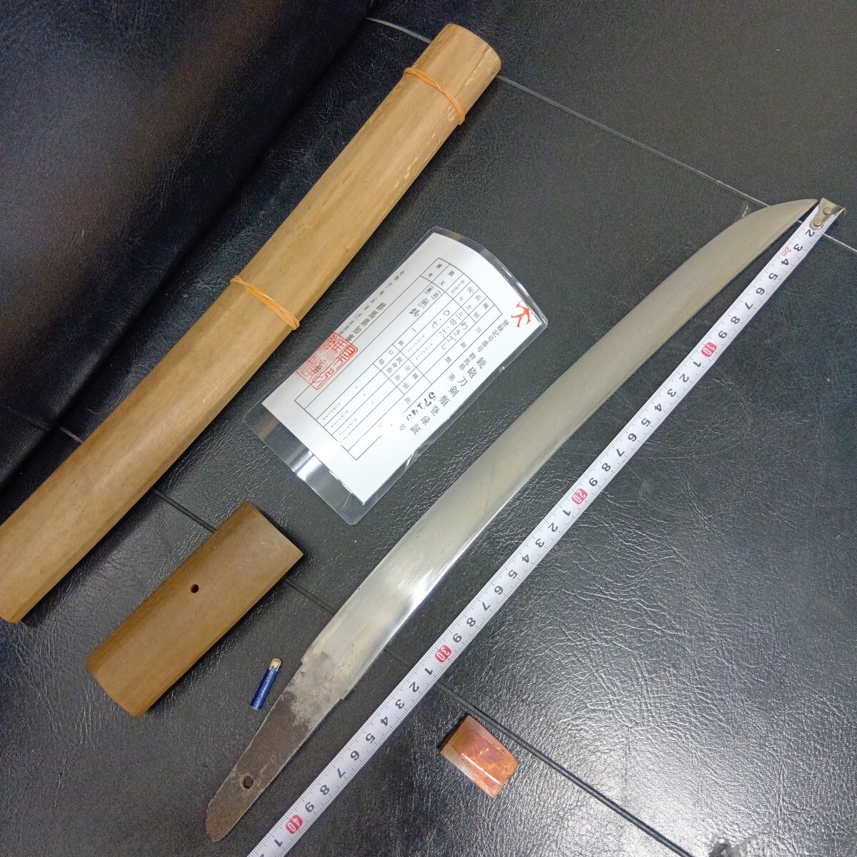 真剣 登録証有 日本刀脇差 江戸時代 平造り 長さ34.6cm 反り0.7cm 目釘1 無銘 元幅2.92cm 元重ね4.0cm 江戸時代 発見間もない刀 生出し品 美品 現状品 古い為薄汚れ錆有り仕上げて見て下さい 良く画像をご覧頂き入札をお考え下さい