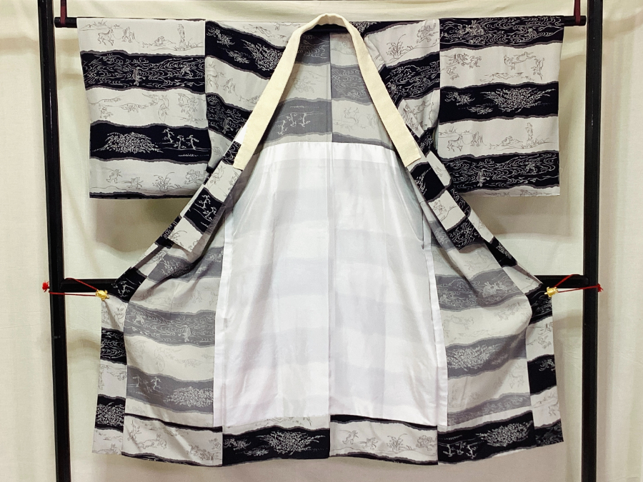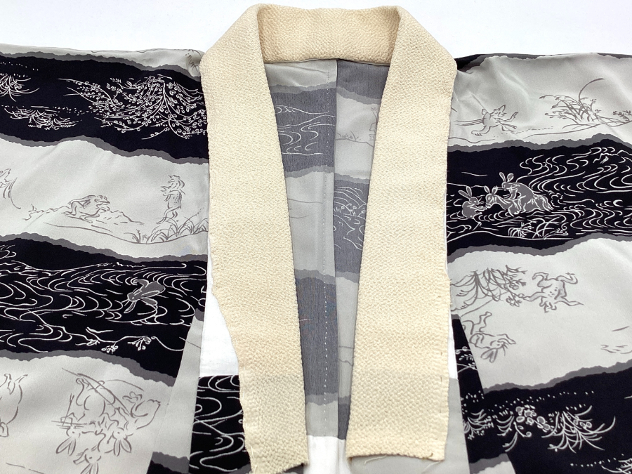 | コメント | 中古の正絹お仕立て上がり長襦袢です。 鳥獣戯画友禅加工居敷当て仕立ての品物です。 しつけ付きバチ衿ちりめん半衿付の身幅ゆったり仕立てです。 使用感少ない未使用に近い綺麗な品物です。 |