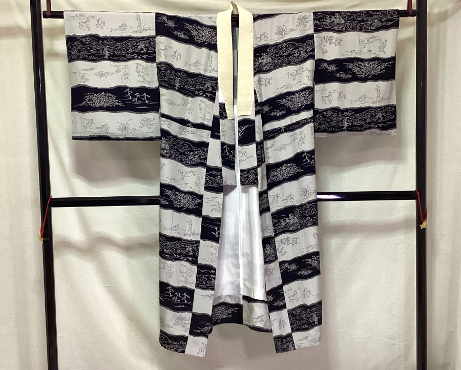 | サイズ | 身丈肩約124cm 裄丈約65cm 袖丈約48cm 前幅約28cm 後幅約31.5cm 適応身長約145cm~150cm |
