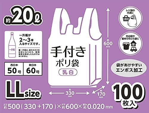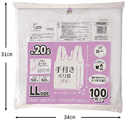 2冊セット・乳白 約20L(LL) PRH302・・Size:約20L(LL)Style:2冊セット・サイズ:縦60cm×横33cm+マチ17cm×厚み0.02mm・生産国:ベトナム・色:乳白・枚数:100枚×2冊セット・一升瓶が2~3本入るサイズです。●通常100枚入レジ袋よりもコンパクトで収納時に便利 ●たっぷり使える100枚入り ●乳白色タイプで中身が見えにくい ●シャカシャカタイプのレジ袋 ●スーパーで使用する買い物レジ袋代用、外出時のごみ袋、室内ごみ袋にもおすすめ ●与一般的100枚装相比更加便于收 ●袋子本身呈乳白色,可使外人不易看到袋子里的内容物 ●此袋可用于超市物袋的替代,外出以及室内的袋等 ●警告 ●この袋は、幼児や子供にとって窒息などの危険が伴うものです。幼児や子供の手の届くところに置かないでください。 ●可燃物ですので、火のそばに置かないでください。 ●突起物のあるものを入れると、材質上破れることがありますのでご注意ください。 ●摩擦により衣服に色がつくことがありますので、こすらないようにしてください。 ●将此物品放置在幼儿不可触,以免致幼儿窒息等危。 ●此物易燃物品,勿放在火源附近。 ●于尖的物品因材系有致袋子破裂的可能性。 ●勿摩擦,有致衣服色的可能。| お取引きについて【必ずご確認下さい】 | ||||||||||||||||||||