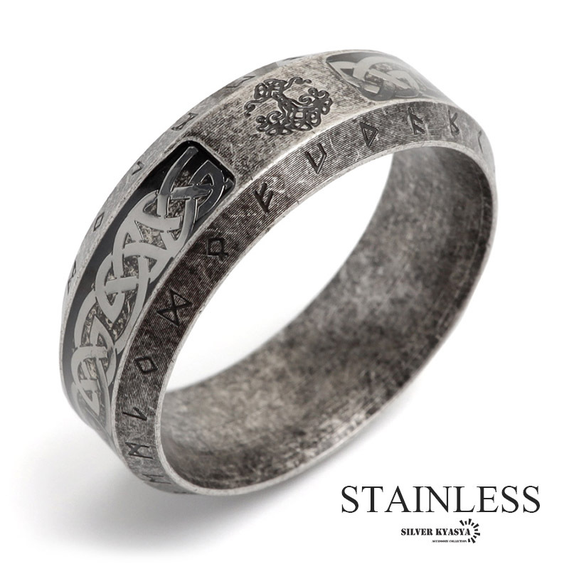 ※こちらの商品は【サイズ(号数):24号】です。別タイプは別商品ページにてお買い求めください。| 商品概要 | ■幻想的なケルト文様 ケルト文様とケルト文字の組み合わせで幻想的な雰囲気のあるリング。アンティークなシルバーカラーが映えます。 ■ステンレス素材を使用 金属部分は頑丈なことで知られるステンレス素材を採用。耐久性はもちろん耐水性も高く水場での着用も可能。金属アレルギーも出にくいとされている金属です。 |