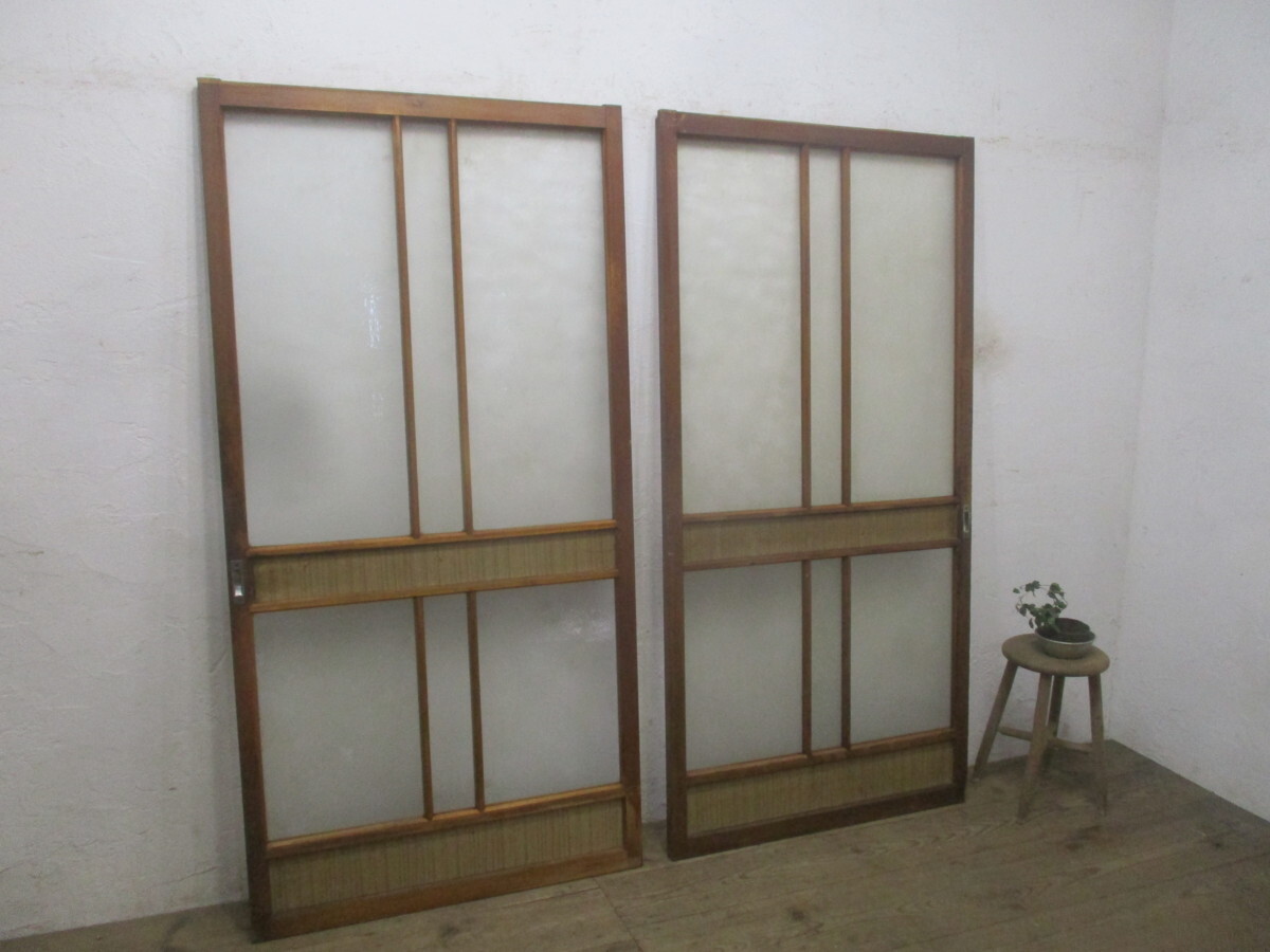 | 商品情報 | ■商品詳細■ レトロな古い木製ガラス戸、2枚セットです。 長年使い込まれた味わいのある品です。 ガラスは、デザインガラスを使用しています。 存在感のある品で、レトロ空間の演出用や店舗什器にもお勧めです。 経年の傷や欠け、染みやガラスに落としきれない汚れ等がありますが、使用には問題ありません。 古い物とご理解いただければ幸いです。 ご不明な点などありましたら、質問欄にてお願いします。 ■サイズ■ 全体(最大値) (H 176,5cm×W 88cm×D 3cm) ×2枚 竪框 4cm 多少の誤差はご了承下さい。 |