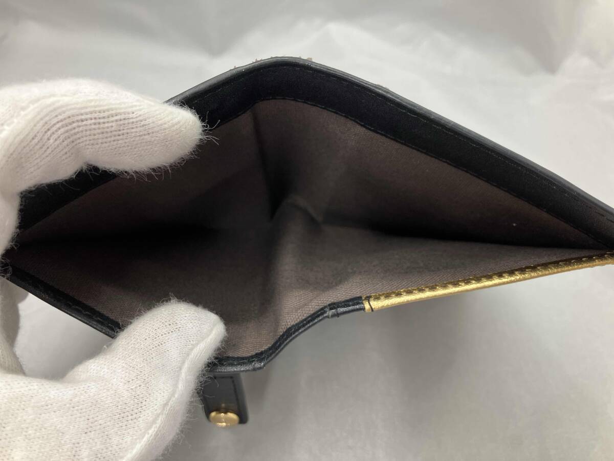 | ●エナメル レザー ●サイズ 縦約9.5センチ 横約16センチ 厚み約15センチ 小銭ポケット開口幅 約10.5センチ お札ポケット開口幅 約18センチ カードポケット4箇所 その他ポケット4箇所 エナメル材質なので、全体的に小傷があります。 画像をご確認下さいませ。 |