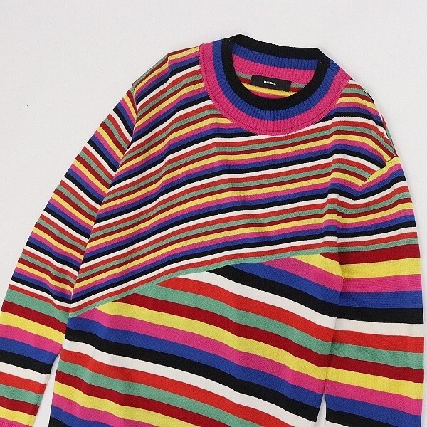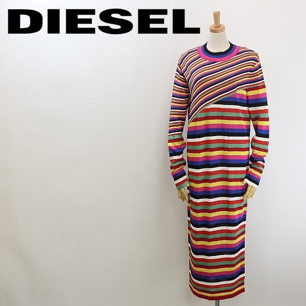 | 【FA575】◆DIESEL ディーゼル マルチカラーボーダー柄 切替 レーヨンニット ロング ワンピース M | |
