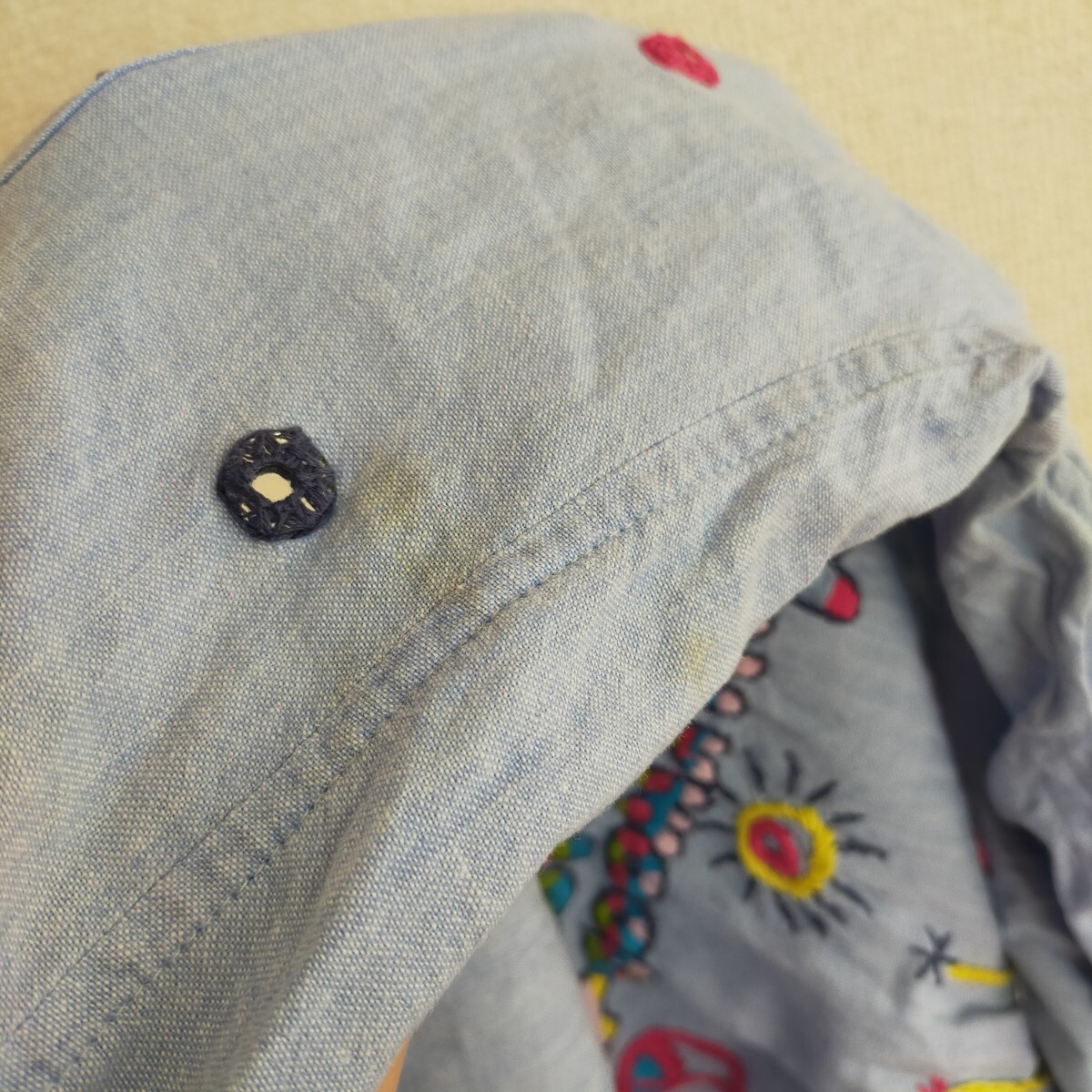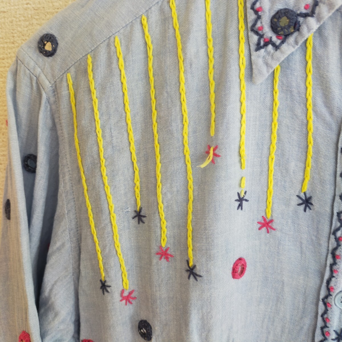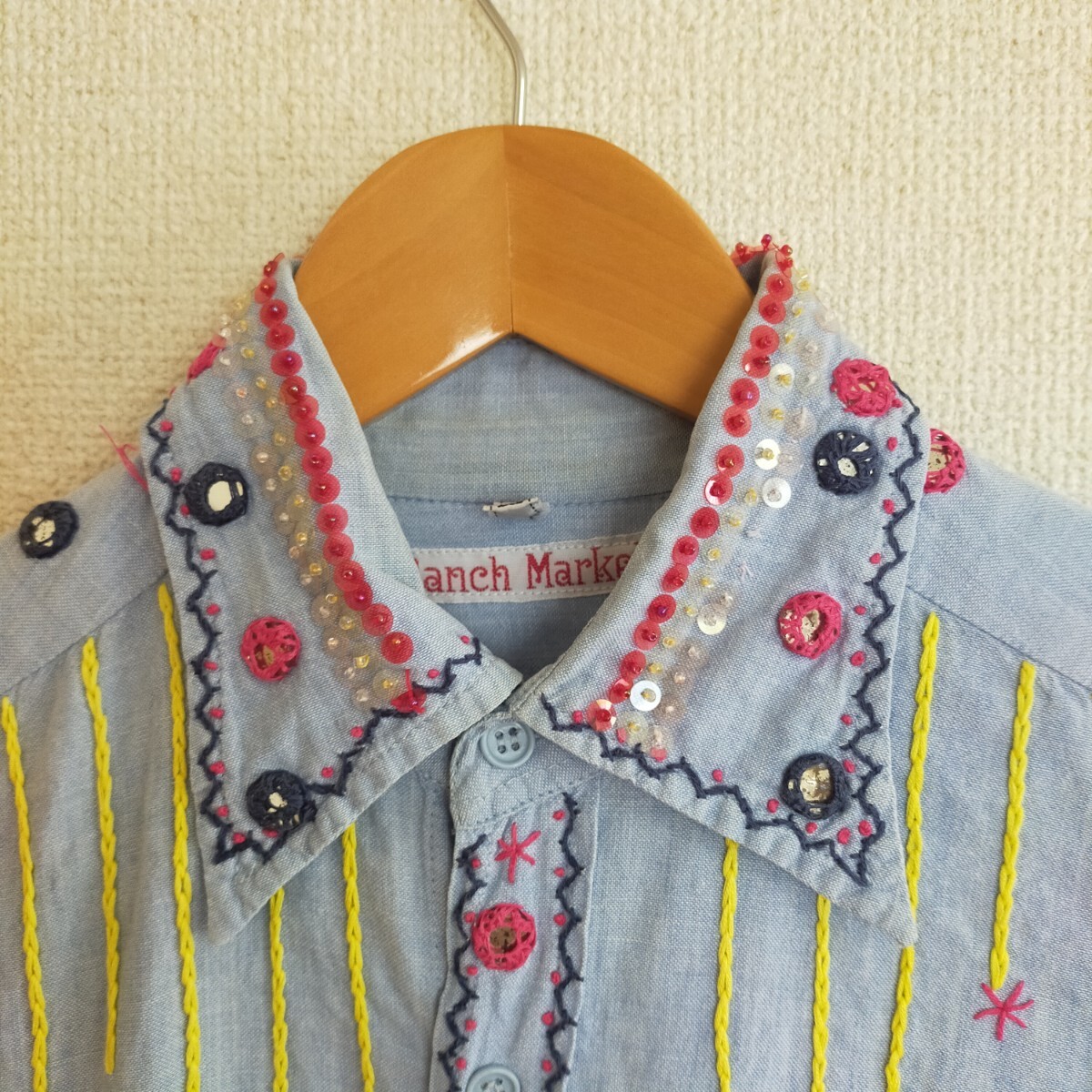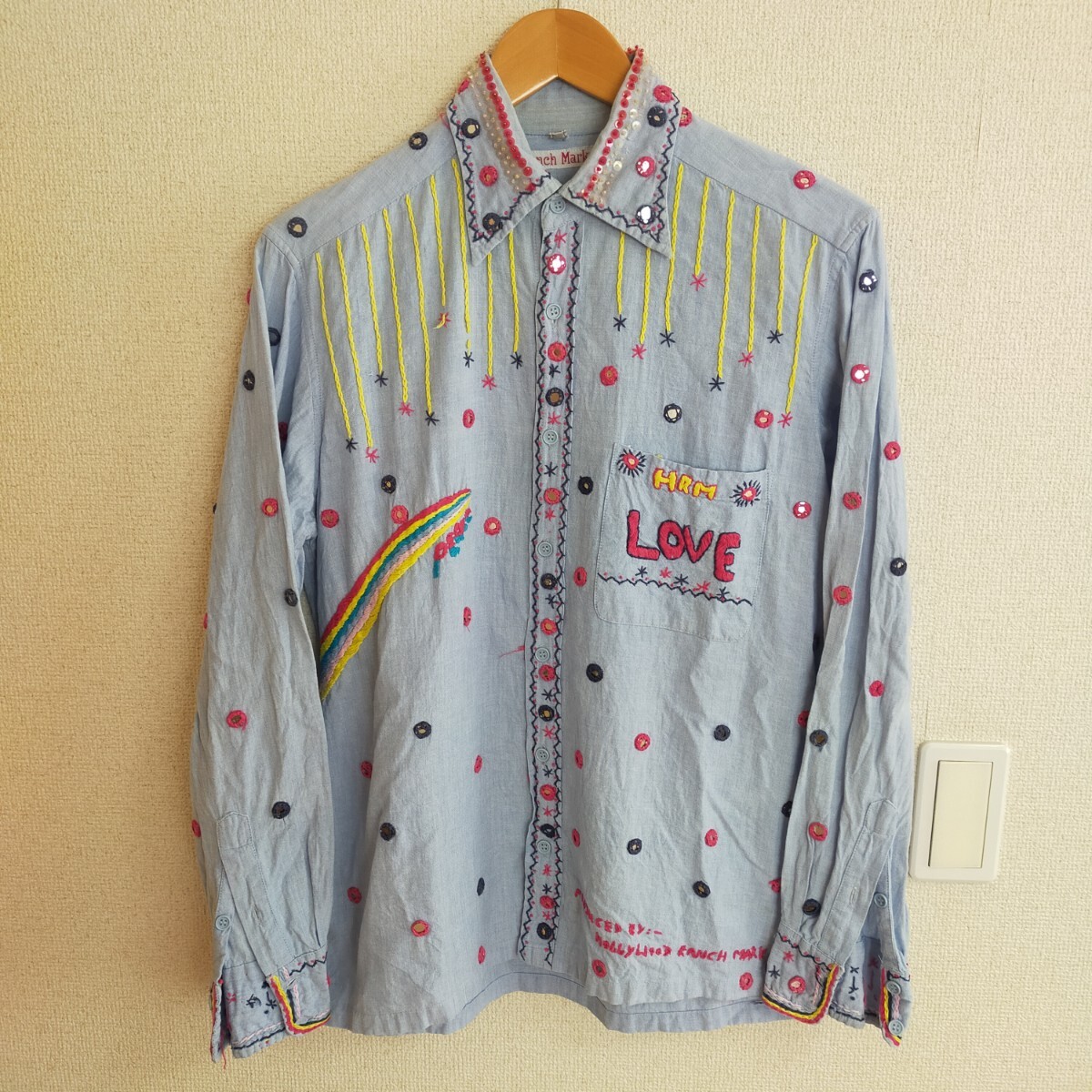 "| ハリウッドランチマーケット HRM ハリラン 総柄刺繍 シャンブレーシャツ 長袖 2(M) ブルー(青) | |