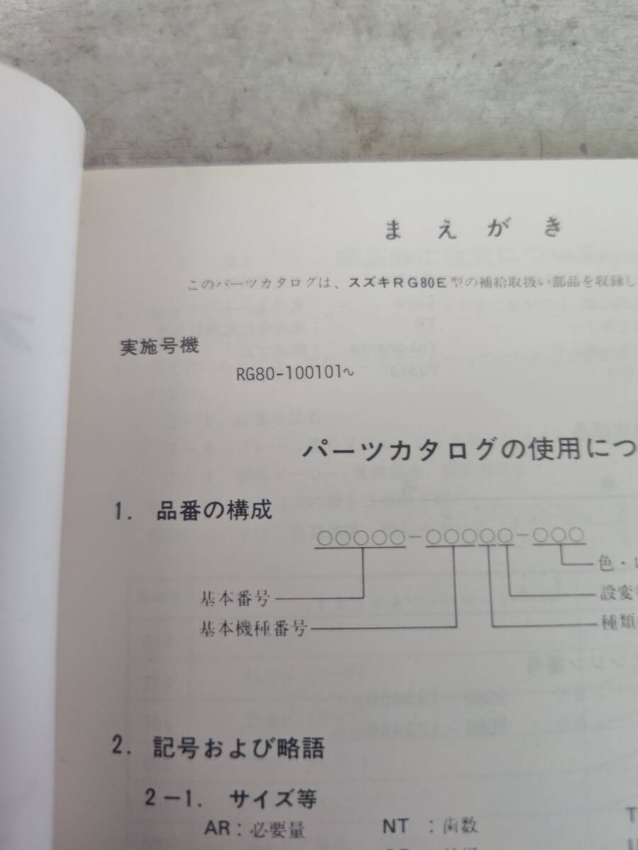 パーツカタログ スズキ RG80E 型式 RG80 昭和56年2月発行 ▲メーカーが発行する正規のパーツ分解図になります ▲各部汚れや色あせはありますが破れや落丁など閲覧に問題のある欠損はないかと思います。 | |