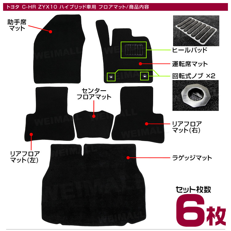 商品コード:MAT031 トヨタ C-HR(ハイブリッド車対応) ブラック 6枚セット(フロント2枚+リア3枚+トランク1枚) |