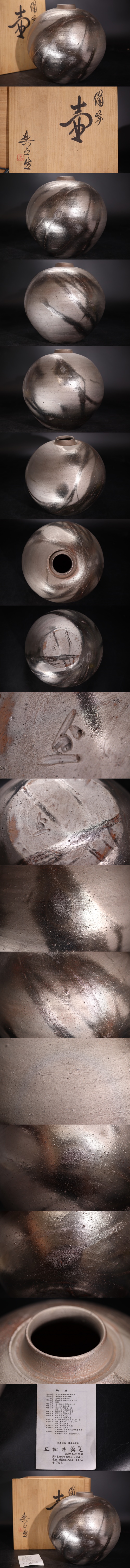 | 松井與之 造 備前 壺 栞・共箱付 / 備前焼 窯変 飾壺 花器 花瓶 手捻り 手造 .G2522 |