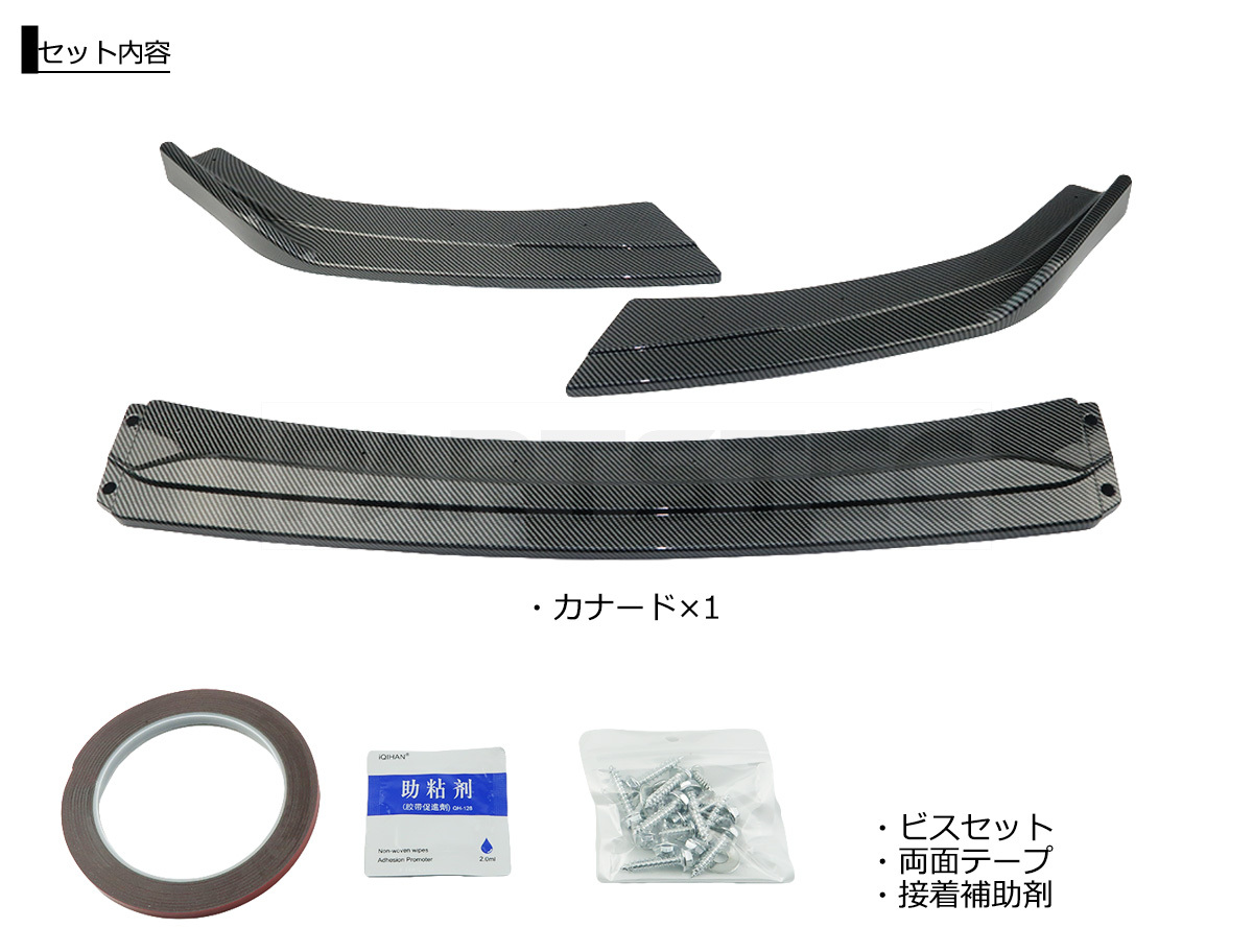 | セット内容 | ■カーボン調 フロントリップスポイラー本体 ■固定用ビス |
