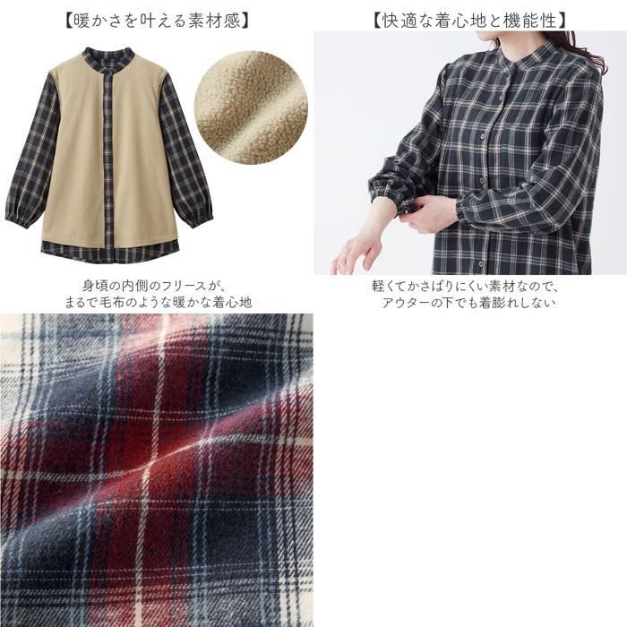 | 商品説明 | ・・【あったか、おしゃれロングシャツ】 ・ふわふわの裏地で暖かさも、着回し力も叶える万能シャツ。 ・ ・【着回し自由な万能アウター】 ・前を開けて羽織りとして、閉じればロングシャツになる便利さ ・ ・【気になる部分をカバー】 ・ヒップまで隠れるロング丈で、体型を気にせず着られるシルエット ・ ・【すっきりとしたデザイン】 ・首元をきれいに見せるスタンドカラーと洗練されたチェック柄 ・ ・【暖かさを叶える素材感】 ・身頃の内側のフリースが、まるで毛布のような暖かな着心地 ・ ・【快適な着心地と機能性】 ・軽くてかさばりにくい素材なので、アウターの下でも着膨れしない |