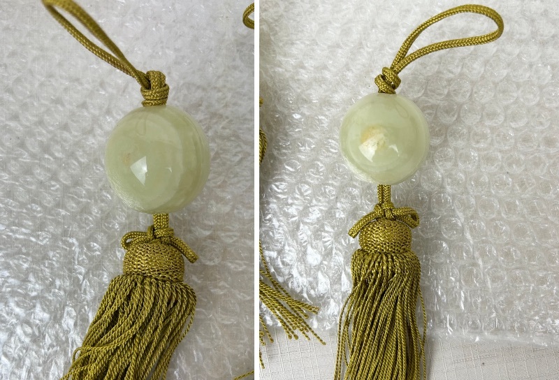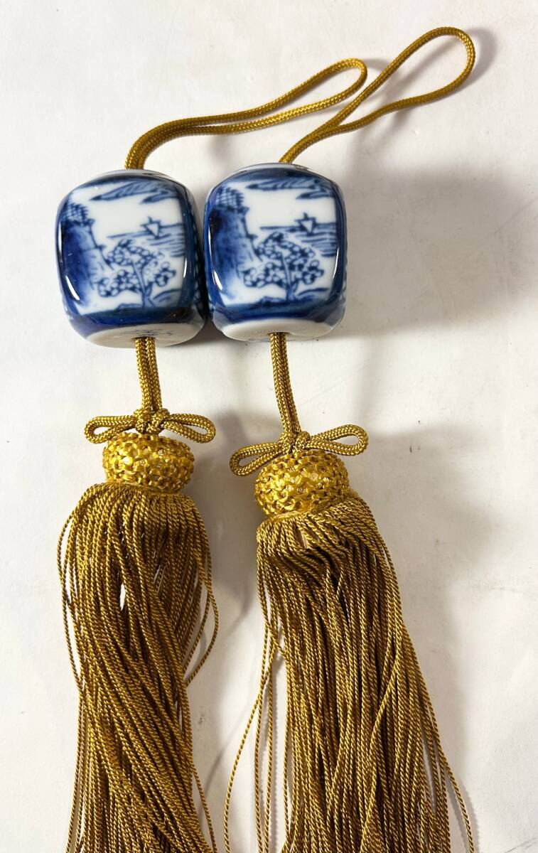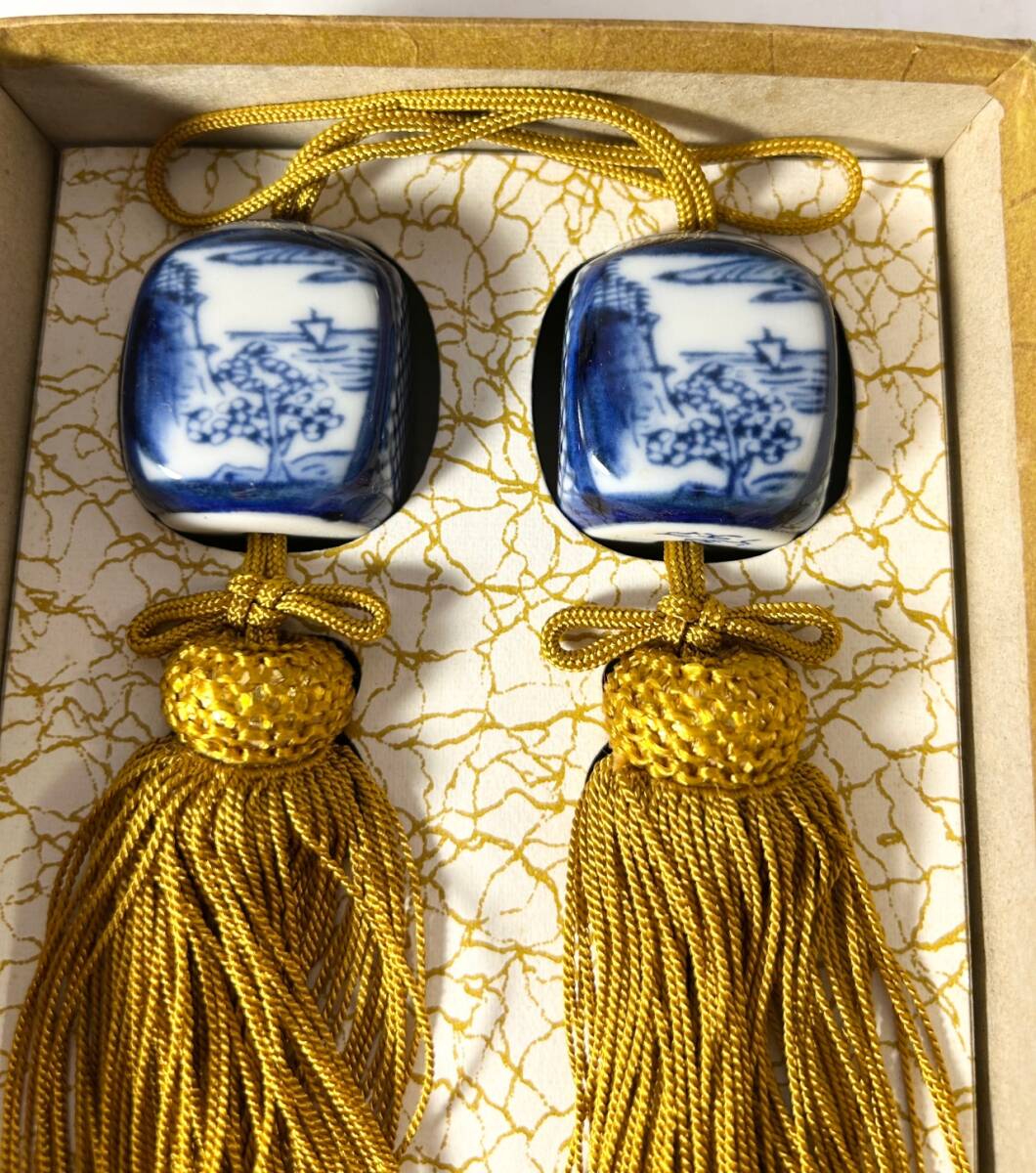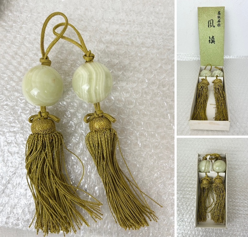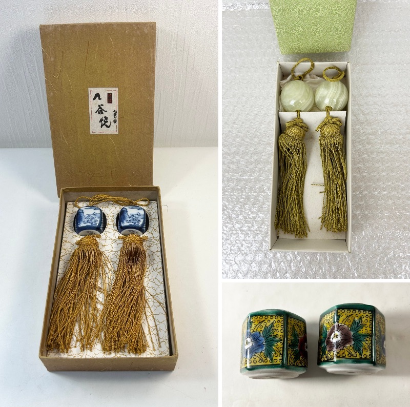 風鎮 染付山水 九谷焼ほか 3種類です。 染付山水の九谷焼風鎮と房なしの九谷の風鎮と石材製の風鎮です。染付山水の九谷焼と石材製の風鎮は共箱付きです。 共箱には経年保管時の劣化、汚れ、シミ、破れ等があります。※発送方法でゆうパケットプラスをご希望の場合は共箱には入れずに発送させていただきます。 傷、汚れは目立つ箇所を中心に撮影しております。 写真で確認できない部分がある場合もございますので、予めご了承下さいませ。 ※商品の特徴が分かりやすいように写真撮影を行っていますが、 ご覧いただいている画像と実物では色調等で違う印象を受けることもあるかと思います。 どうぞご容赦くださいませ。 |