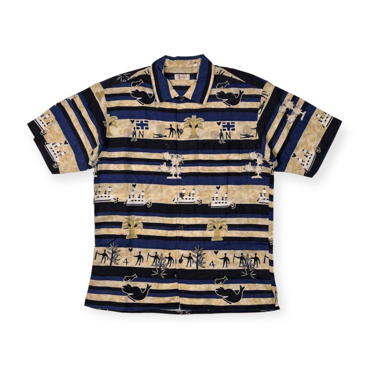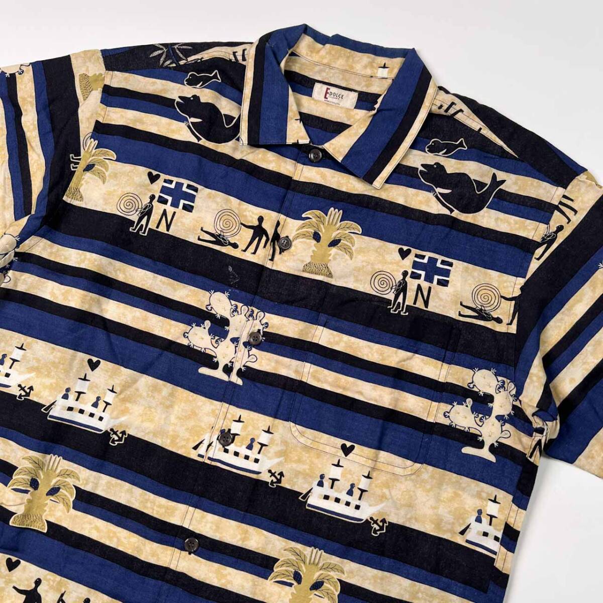 | 商品名 | DOLCE ドルチェ 総柄 ボーダー柄 リネン混 レーヨン 半袖シャツ サイズ 16 /メンズ/麻混 |