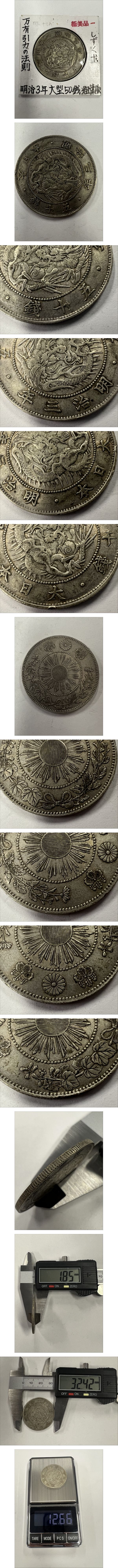 商品説明 | こちらのお品は明治3年50銭銀貨の出品となります。 全てコレクターさんから譲り受けたお品でして真贋なども含め、写真などで詳細をご確認の上ご判断頂ければ幸いです。 |