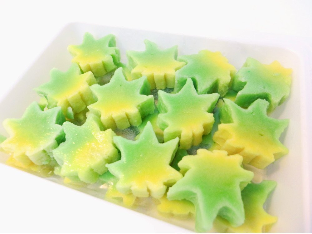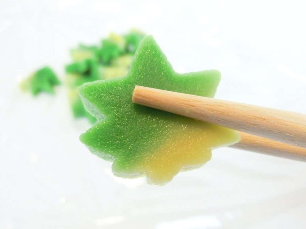 緑のグラデーションで青いもみじの葉を形どった楓麩の