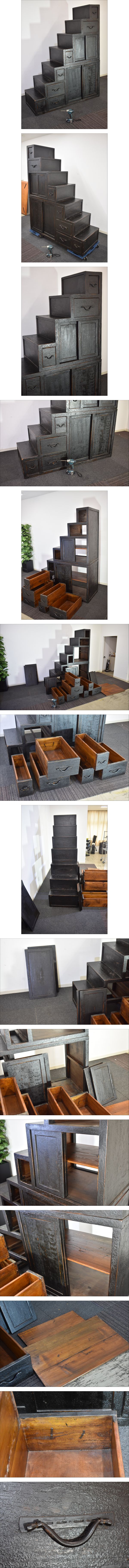 ■アンティーク家具/階段箪笥 希少 迫力 特大 七段 両面階段箪笥「上下2段」時代箪笥 明治/大正期 高さ195cm 発送可 和家具■上下2段式■国産広葉樹/総無垢■ | |||