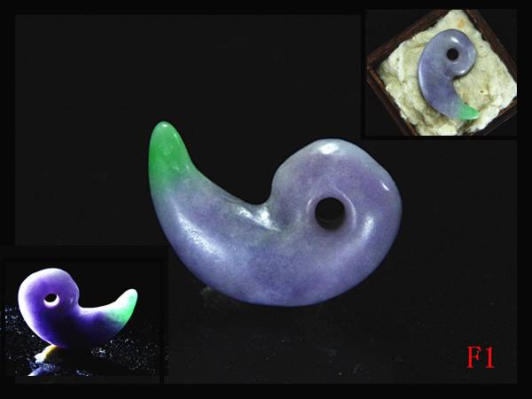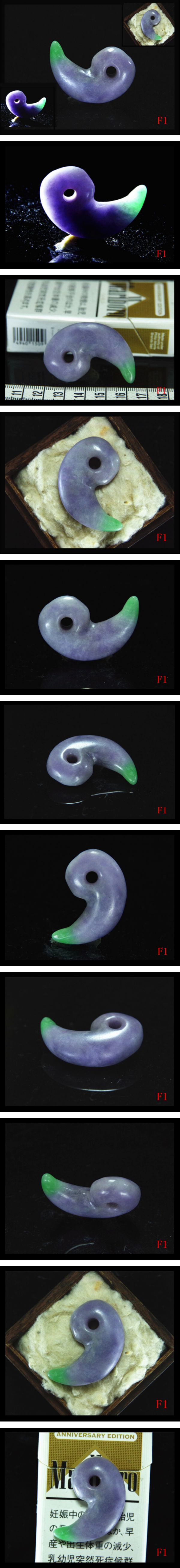 ★味わい深いラベンダー薄紫色若緑色付き★ろうかん質硬玉本翡翠製★極上★ロウカン質硬玉本翡翠製★
