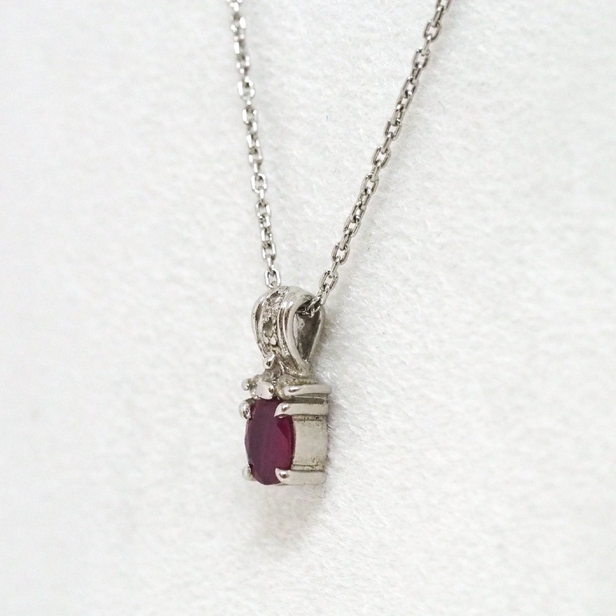 | 商品名 | Pt850/Pt900 赤石 メレダイヤモンドトップ プラチナネックレス 40cm 総3.0g |