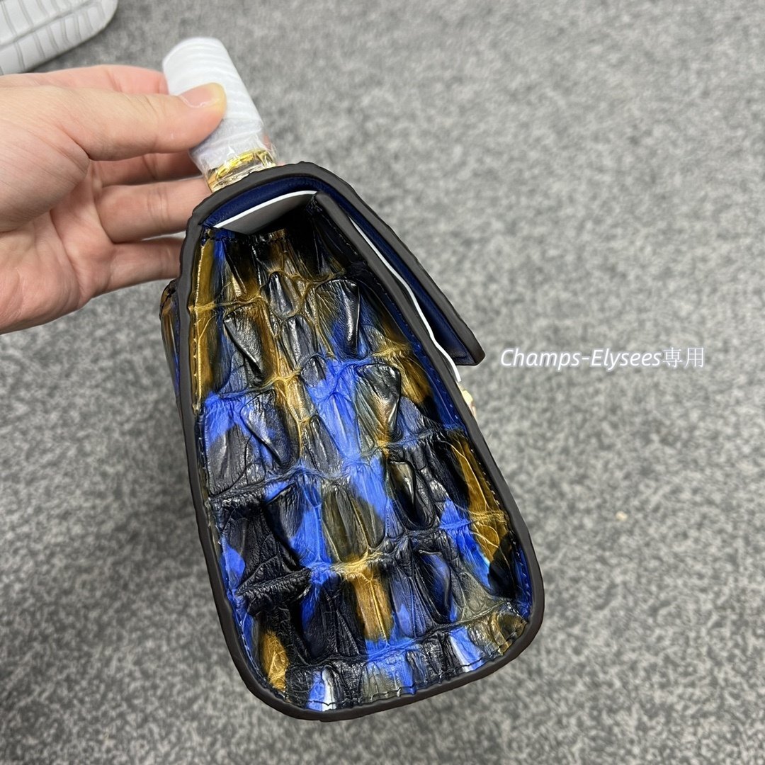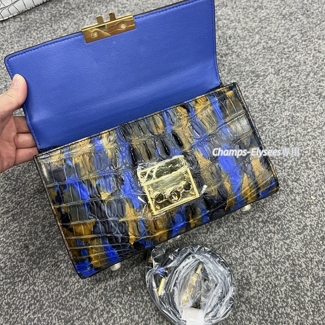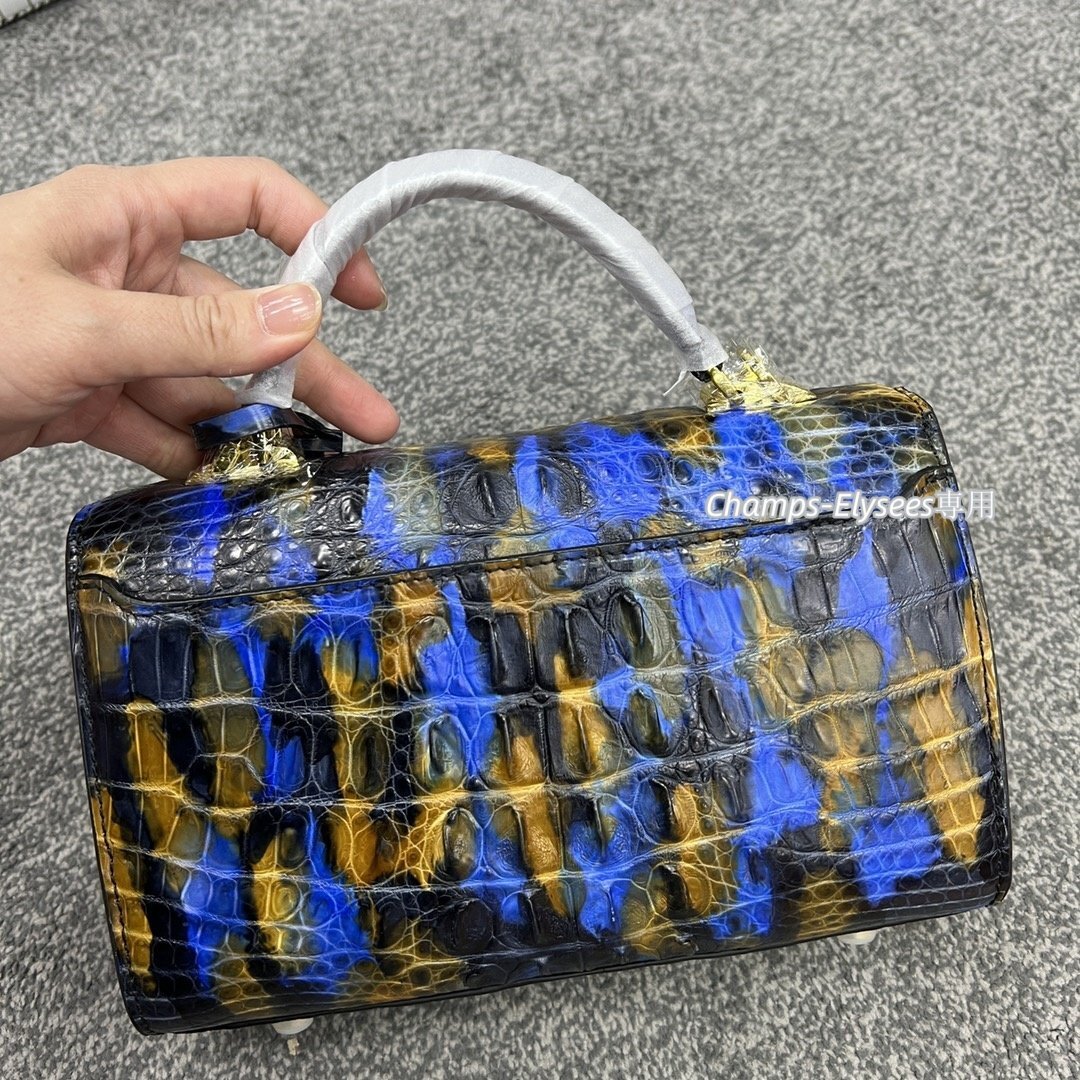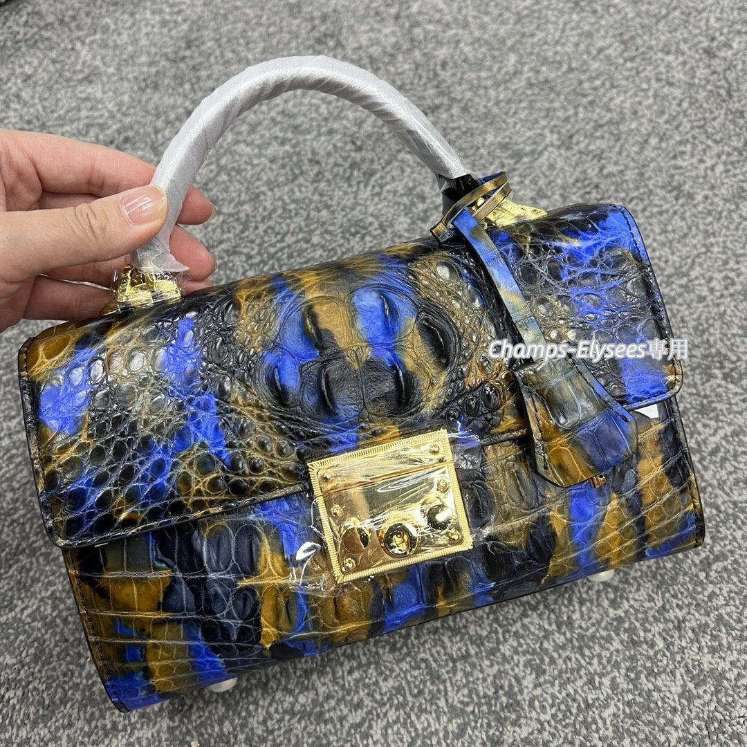 カラフル柄模様 レディースバッグ 特大コブ 本物鰐革 骨革 ショルダーバッグ 1点物 クロコダイルレザー 水染め ②番色 [浏览原始页面]