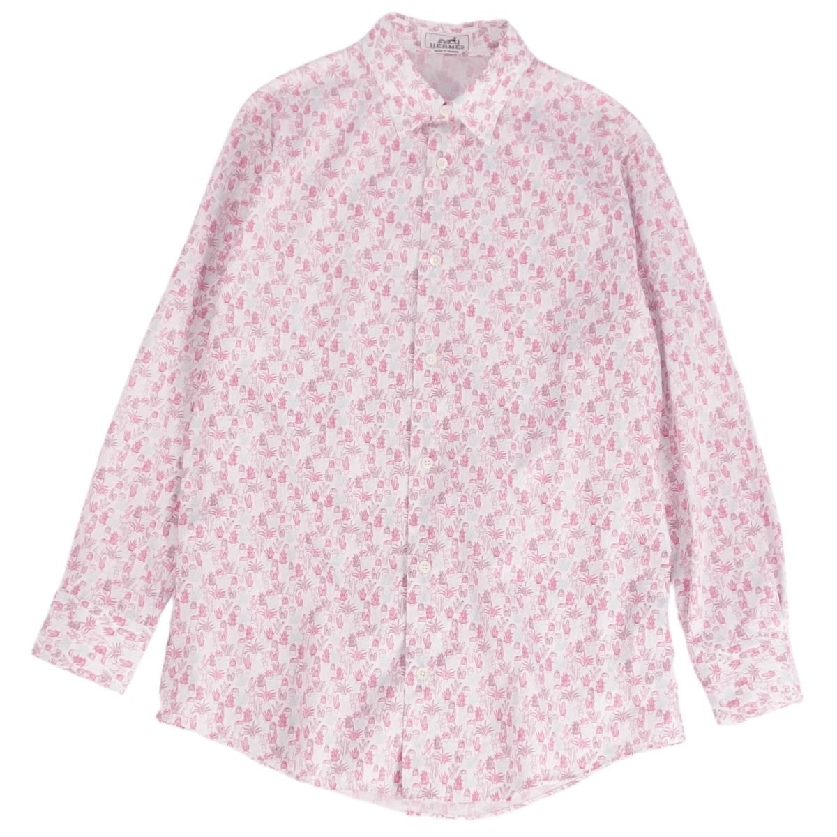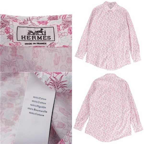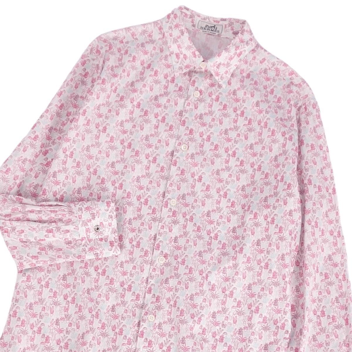 | 美品 エルメス HERMES シャツ ロングスリーブ 総柄 セリエボタン コットン トップス メンズ フランス製 39(15.5) レッド |