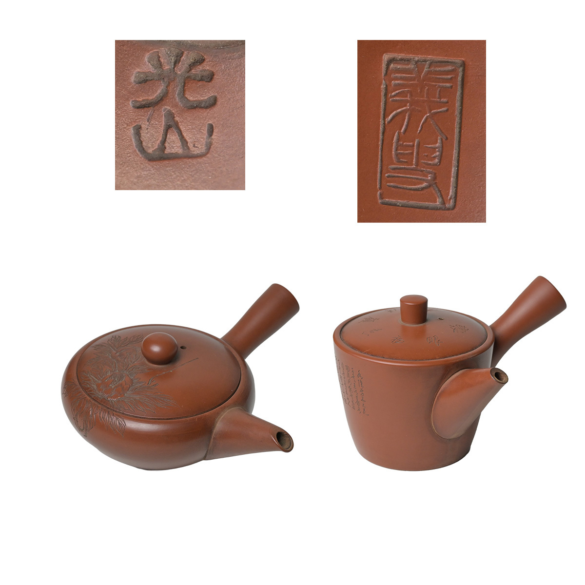 | ご覧いただきありがとうございます。急須のコレクションを同時に出品中です。 併せてご検討ください。よろしくお願いいたします。 寸法 光山 全長 約 13.5×12.5×5.3cm 義叟 全長 約 10×11.5×7cm 光山急須・蓋裏に小ホツ。 その他、詳しくは画像にてご確認ください。 | ||