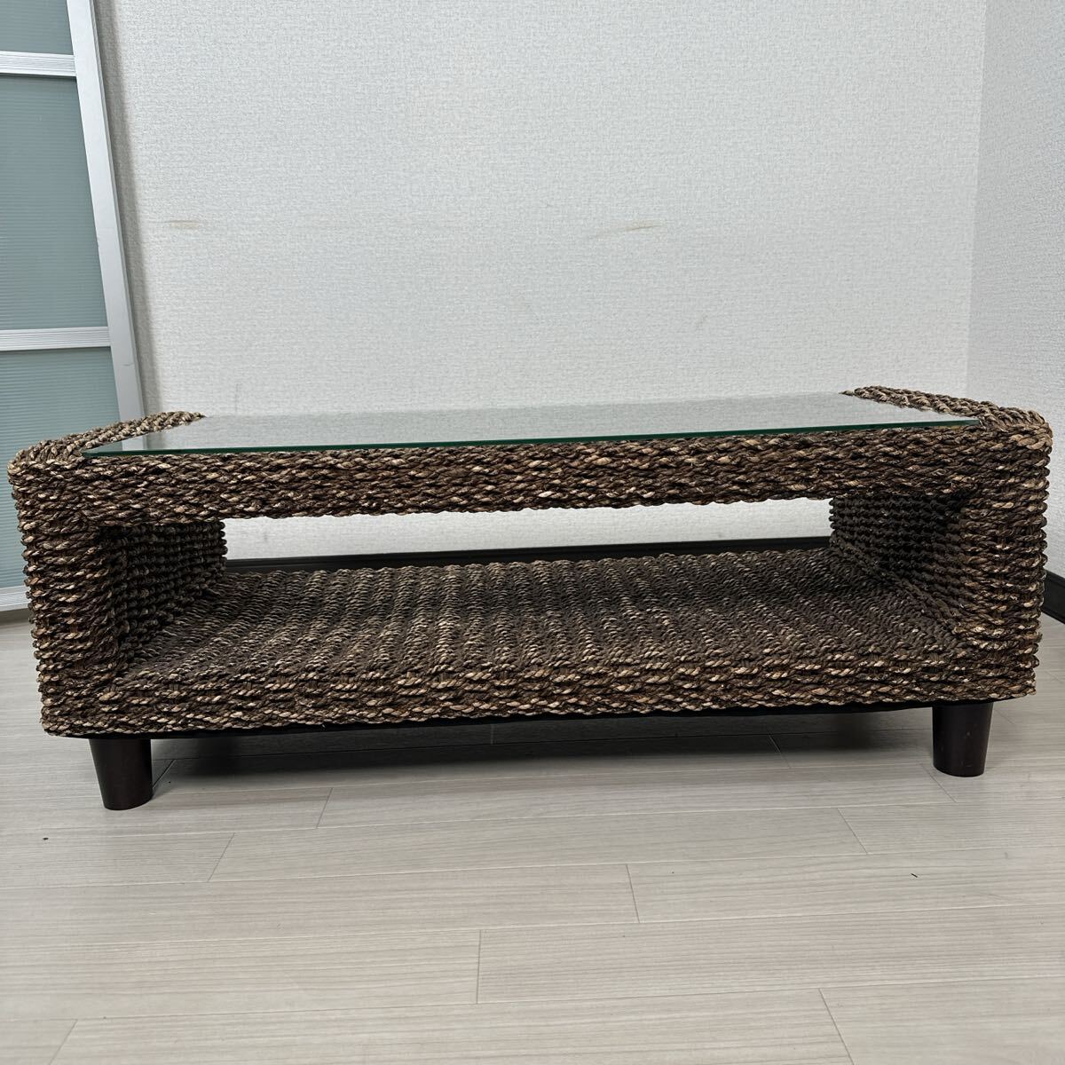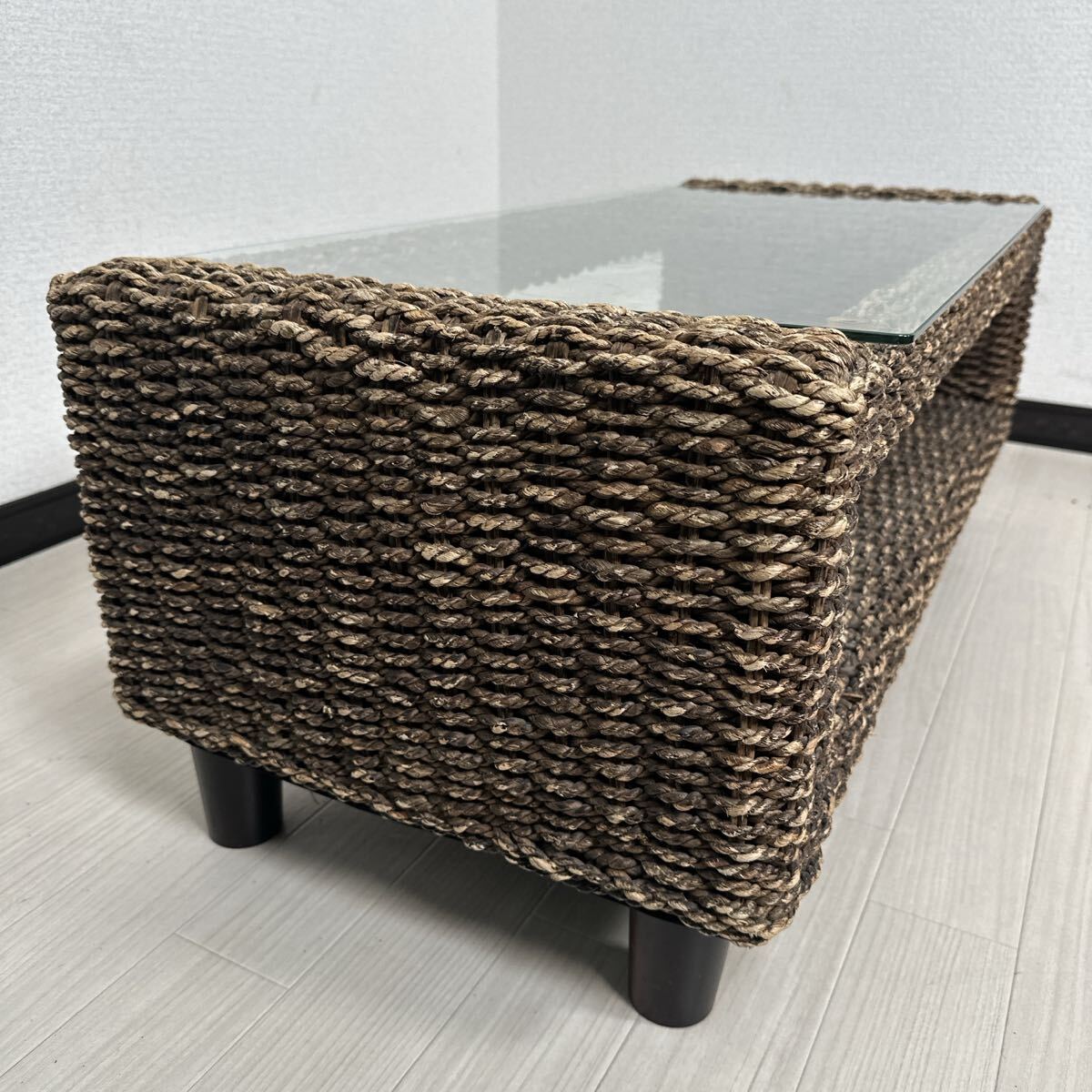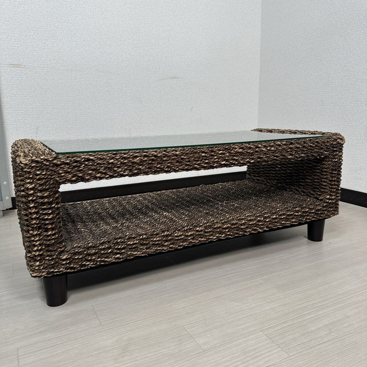 【家財便Bランク】ウォーターヒヤシンス センターテーブル ローテーブル リビングテーブル ガラステーブル リゾート家具 アジアン家具 バリ家具 管理No.※iso※
