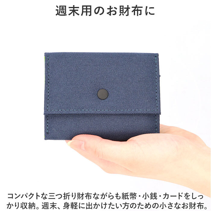 | 商品説明 | ・・手の中にすっぽりおさまる機能的なマイクロ財布!「WEEKENDER coruri BASIC」が新登場。 ・【週末用のお財布に】 ・コンパクトな三つ折り財布ながらも紙幣・小銭・カードをしっかり収納。週末、身軽に出かけたい方のための小さなお財布。 ・【ガバッと開くボックス型小銭入れ】 ・背面の独立型小銭入れは大きく開いて中が見やすく、出し入れもスムーズ。 ・【お札もカードもひとまとめ】 ・内側はお札入れが2つに仕切られているので、見やすく仕分けできるつくり。免許証やカードを入れられるポケットも装備。 ・【便利なミニポケット】 ・中央にミニポケットを配置。会計後にレシートをサッと入れることができて便利。 ・【Dカン付きで紛失防止】 ・Dカンが付いているので、お手持ちのカラビナやチェーンを取り付けて紛失防止に◎ ・【豊富なカラーバリエーション】 ・内側のバイカラーがアクセントになったシンプルなデザイン。年代問わずユニセックスで使えるのでギフトにもおすすめ。 ・【ポケット仕様】 ・背面:小銭入れ×1 ・内側:お札入れ×2、カード収納×2、ミニポケット×1 |