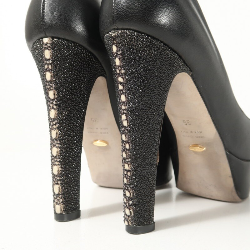 | GS4449△イタリア製 sergio rossi セルジオロッシ ヒール:スティングレイ レザー プラットフォーム ヒール パンプス ブラック系 35/約22cm | |||