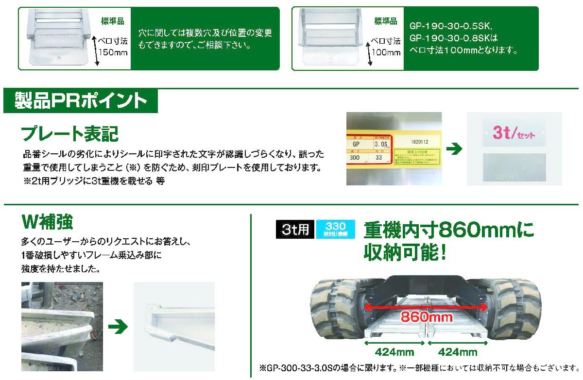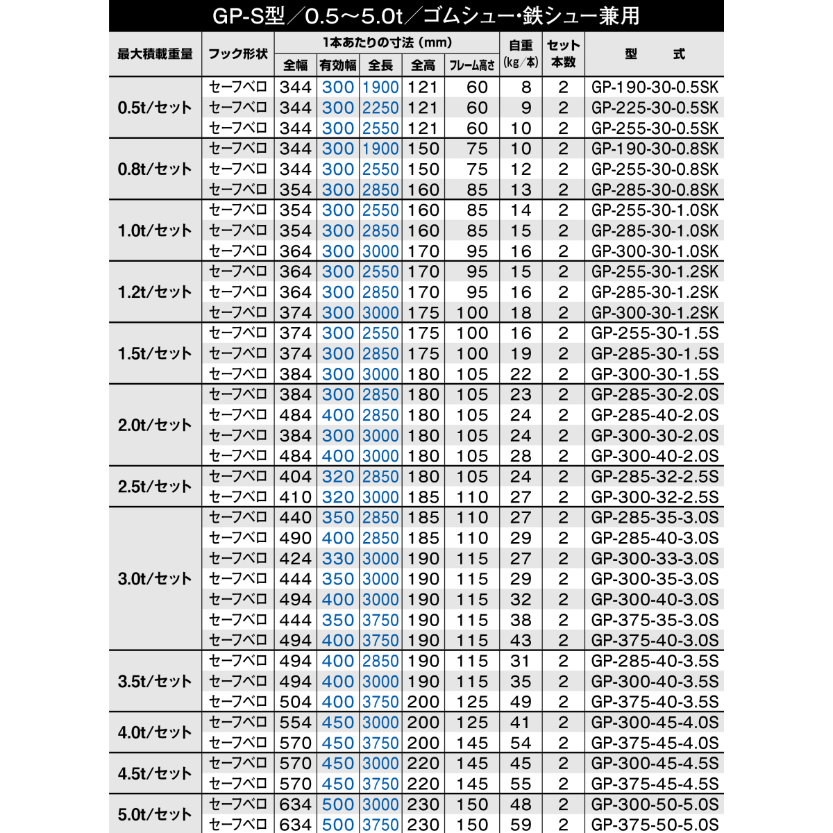 積載重量は1本あたり0.4トンです 昭和ブリッジ 0.8トン(0.8t)ベロ式 全長2850mm/有効幅300mm【GP-285-30-0.8SK】2本組 全幅354mm自重13kg/1本 | ||