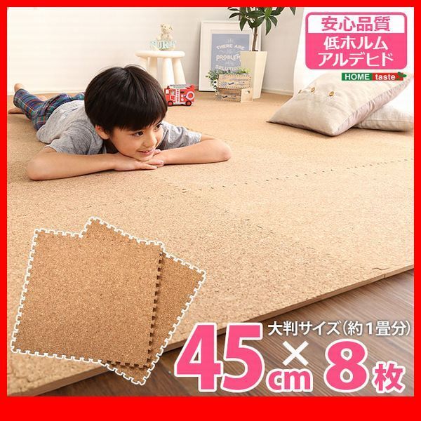 【ポイント】 大粒の天然コルクを使用したジョイントコルクマット8枚タイプです。 衝撃を吸収するEVA樹脂だから防音効果や保温効果があります。 安心して使える低ホルムアルデヒド商品、水洗いできるから、汚れても安心♪ レイアウトしやすいサイドパーツ付きです。 |