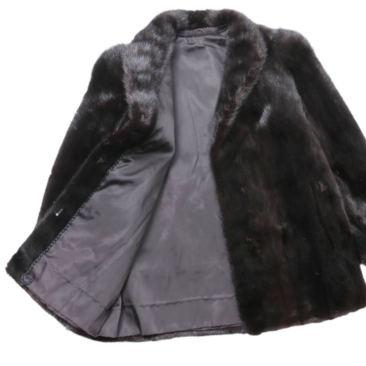 | GS4372◇逆毛ミンク ヘアアップ ファージャケット ファーコート ハーフ丈 サイズ11 毛皮コート ブラック×ダークブラウン系 | |||