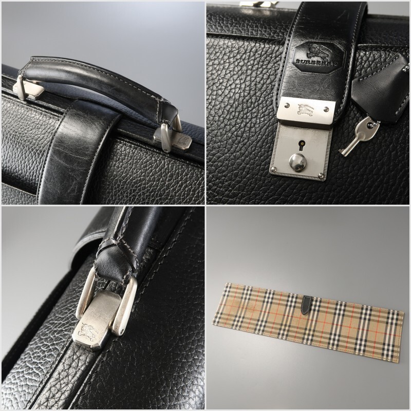 | GS4205◎BURBERRY バーバリー 鍵付き レザー ダレスバッグ ビジネスバッグ 鞄 裏:ノバチェック柄 ブラック 黒 | |||