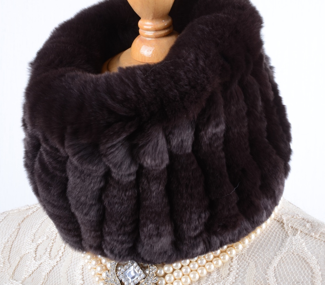 | ◆新品◆限定 柔らかな毛皮の レッキス編み込み◆スヌード ブラウン毛皮ファー | ||