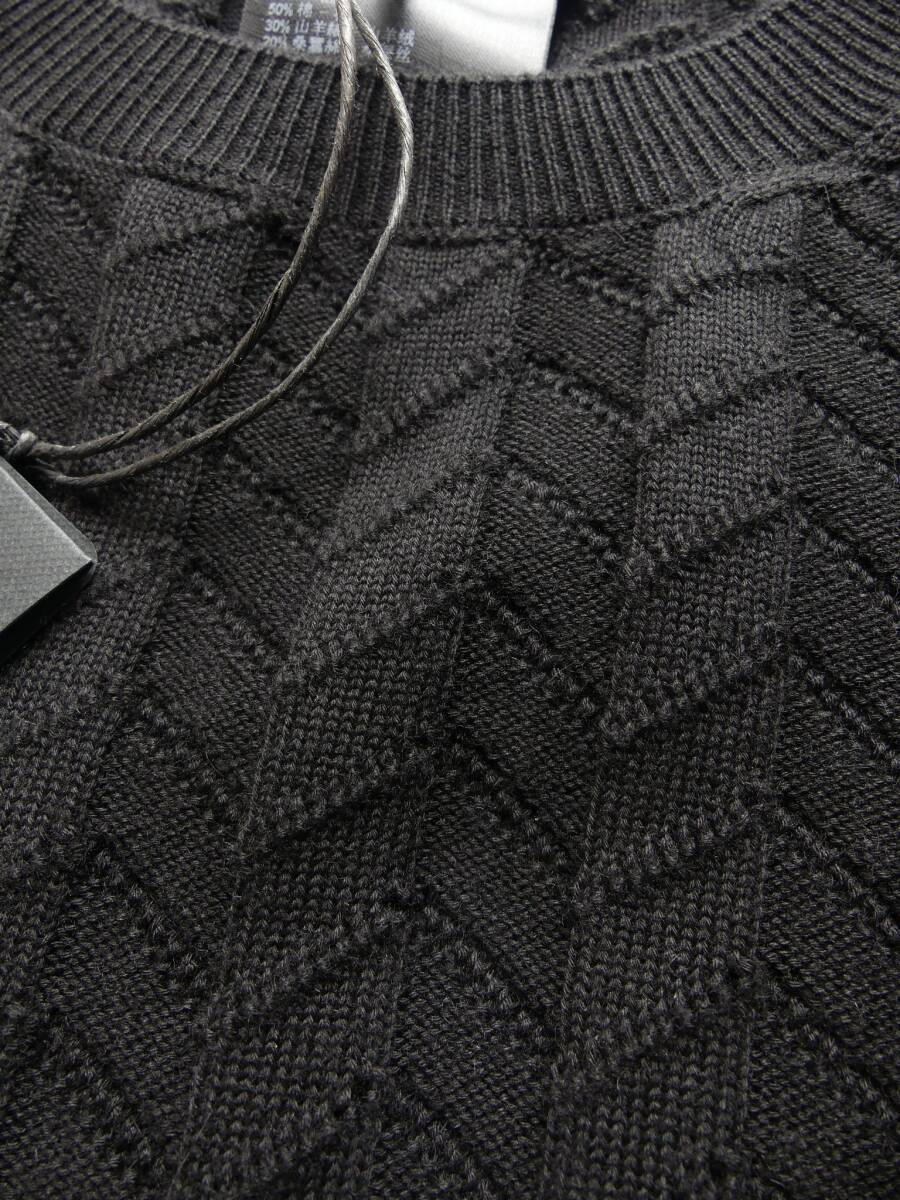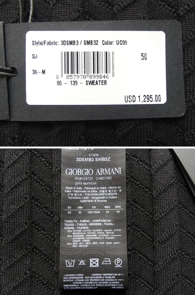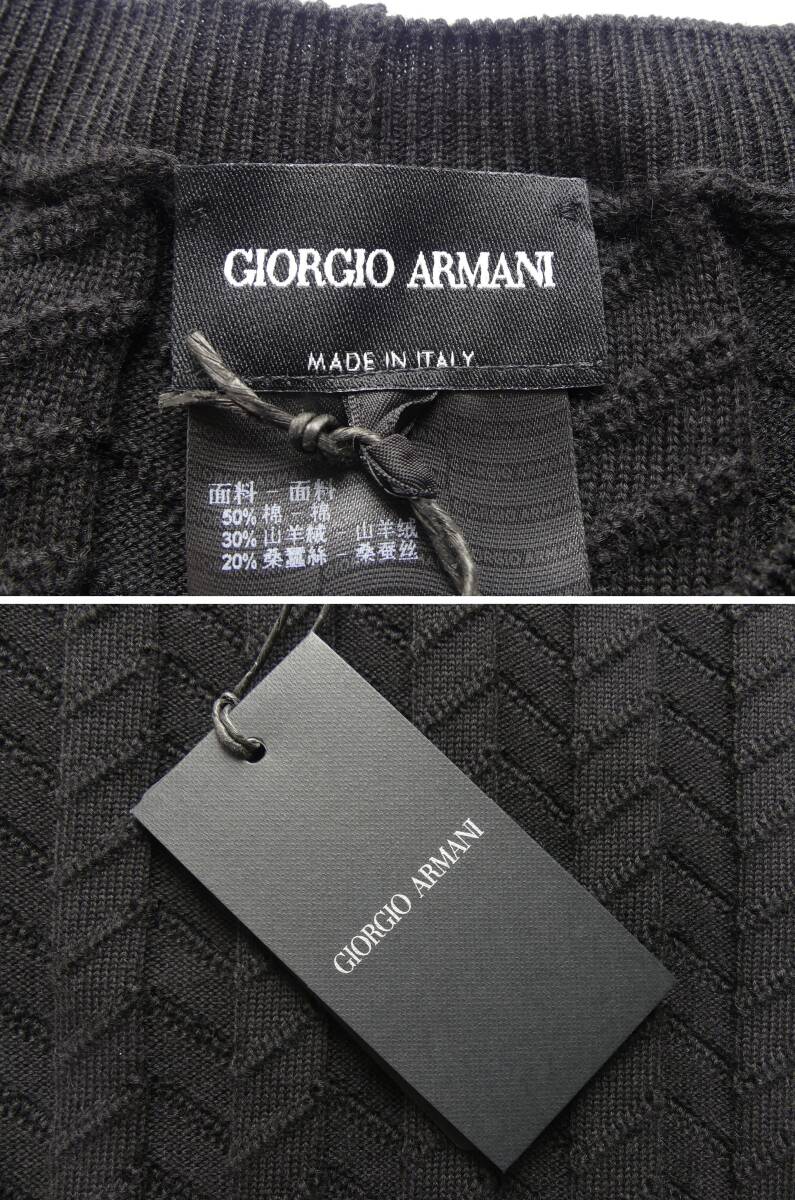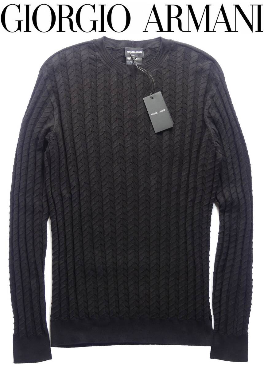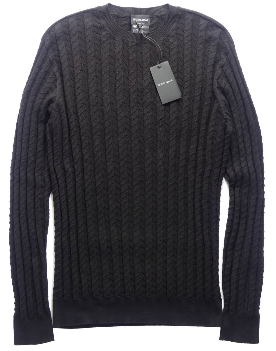 GIORGIO ARMANI/ジョルジオ・アルマーニ 編みテクニックで表情を最大限に引き出した技ありシェブロン黒ニット アルマーニ直営店購入の正規品新品です