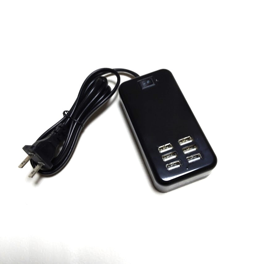 | たくさんの中からご覧いただきありがとうございます。 ◆商品説明 USB出力6ポートの電源タップ ケーブル 黒『1個』の出品ページです。 家庭用の100Vコンセントに接続し、必要な場所で使えます。 ★オススメポイント★ 1.『1.5mコードタイプ』 コード付きなので使いやすい場所に引き出せ便利です 2. 『各種USB機器に対応』 スマホ、タブレット、モバイルバッテリーなど幅広く対応可能。 3. 『回路保護システム』 過電流保護、短絡保護、過熱保護、過充電保護、過電圧保護 4.『インテリジェントIC制御』 接続デバイスに応じて、最適な電圧/を提供するために、 出力電圧/電流を自動的に制御します。 ◆商品の仕様 サイズ 約58×113×30(t)mm 入力 100-240V 50-60HZ 出力 5V / 2.4A(MAX) 電力 30W(MAX) 重さ 約148g カラー 黒色 材質 高品質PC ABS難燃材 | |||