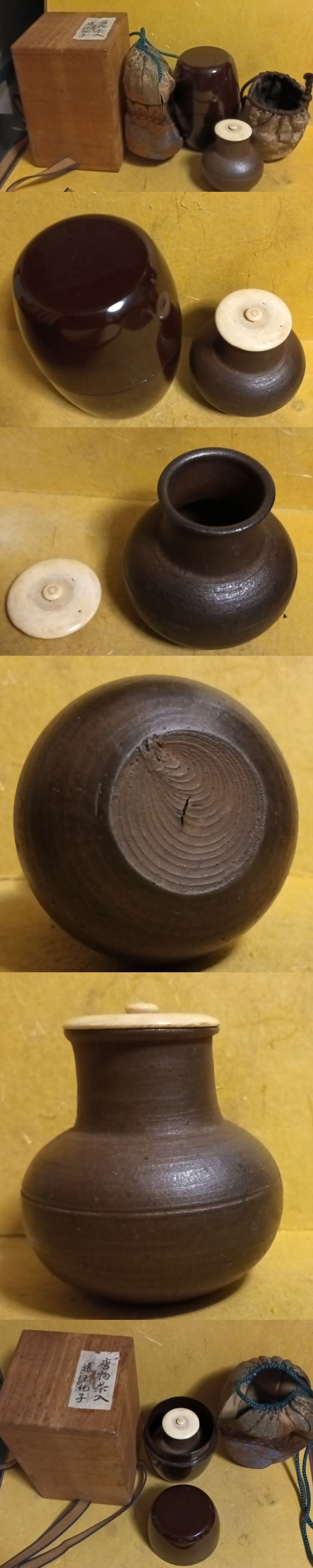 唐物茶入 文琳 茶入 漆茶筒 茶筒袋 仕覆 箱付