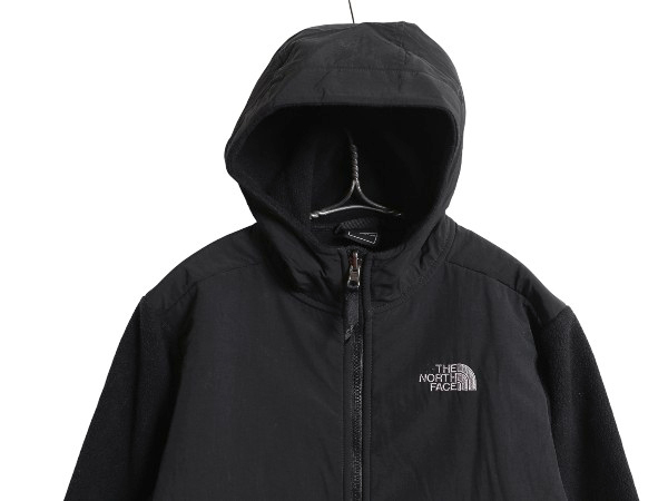 ノースフェイス フード付き デナリ ジャケット ボーイズ L メンズ XS 程 アウトドア フリース ナイロン パーカー フルジップ ジャンパー 黒