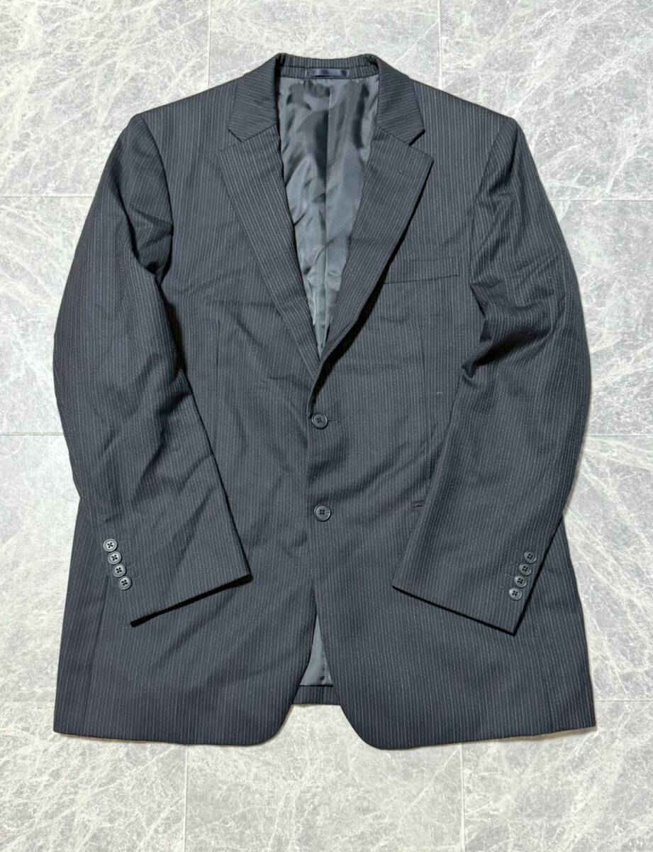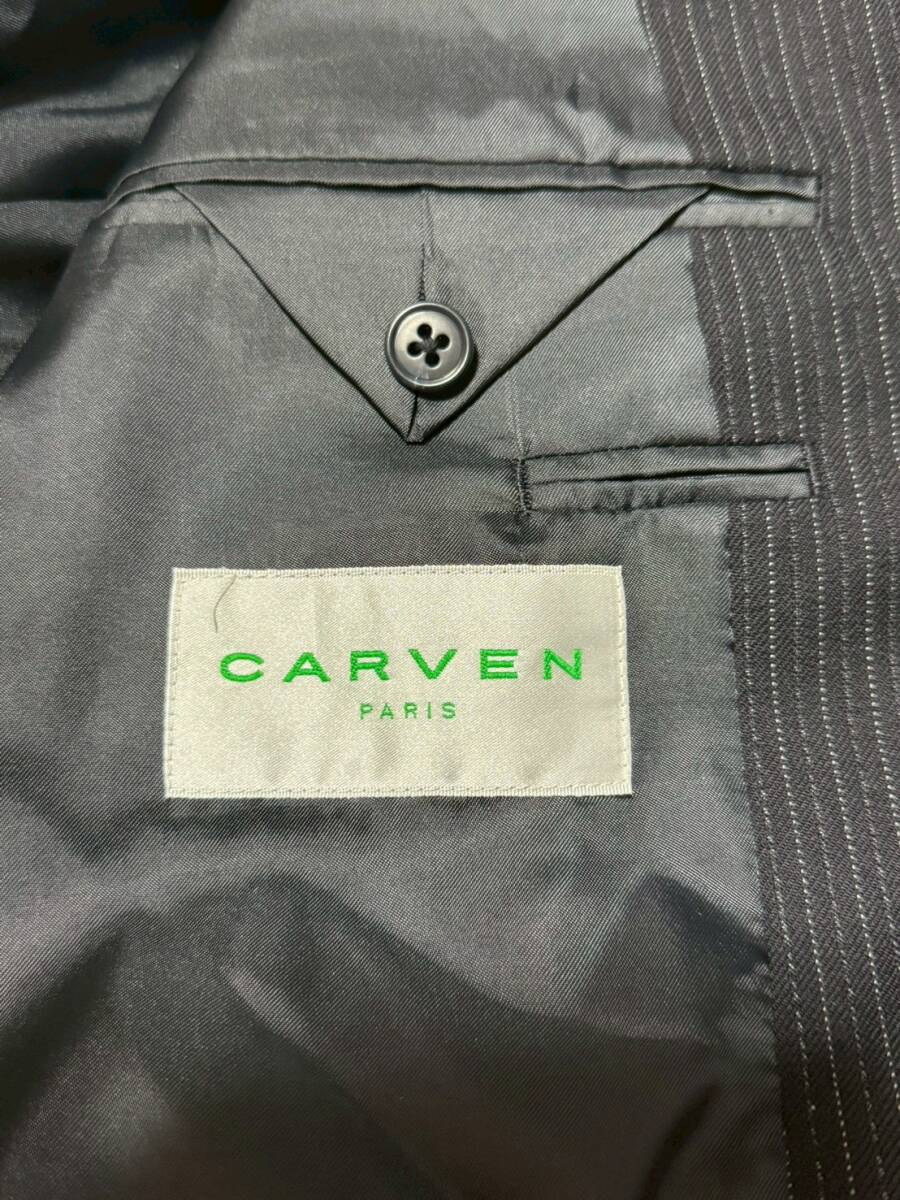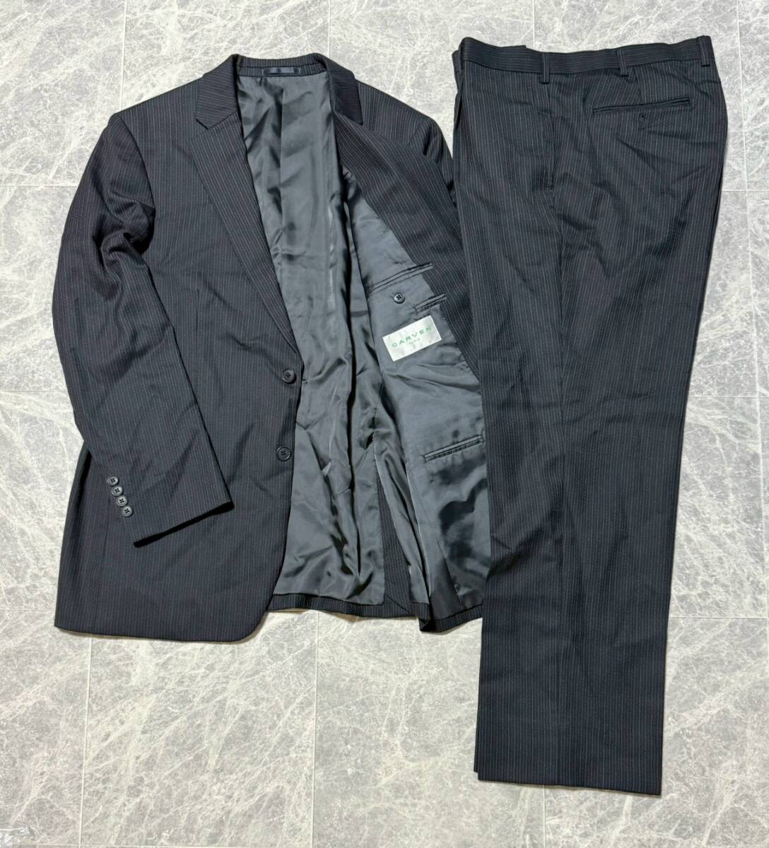 商品名: CARVEN カルヴェン ウール ストライプ シングル 2B ワイド スラックス パンツ スーツ セットアップ 黒 ブラック