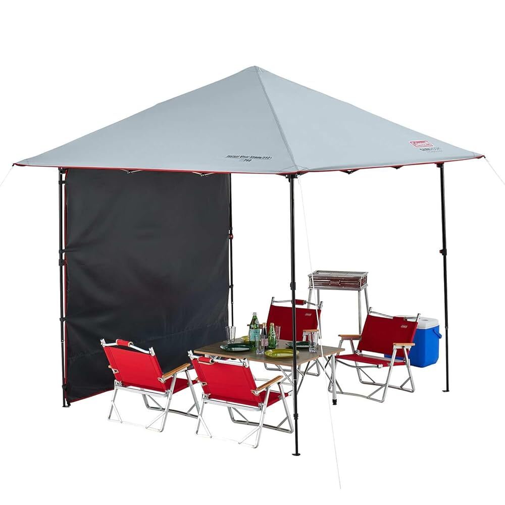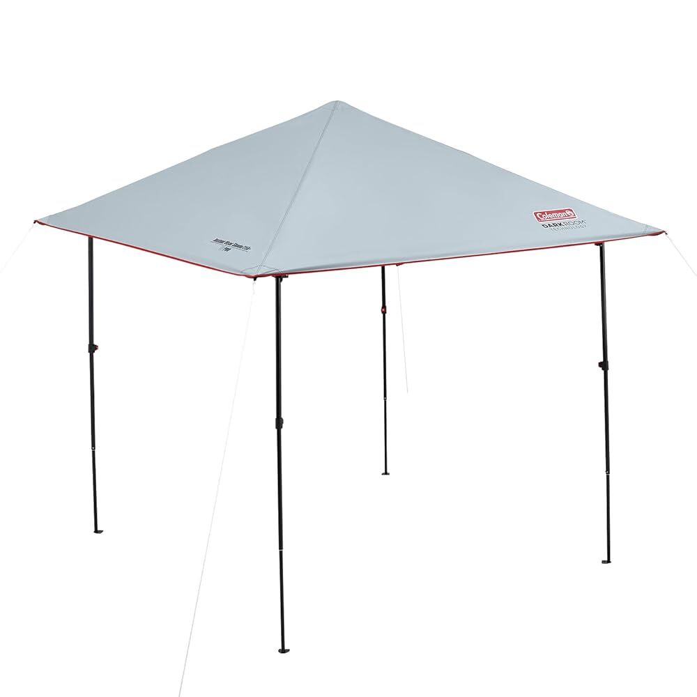 【新品】毎日13時までに決済確認がとれたご注文は当日発送致します。【商品紹介】日光を90%ブロックし涼しい空間をアウトドアでも可能にする簡単シェード■日光の透過をブロック。温度上昇を抑え、涼しく過ごせます■雨や日差しが内側に入りにくいため屋外のレジャーはもちろん、タウンでのイベントにも大活躍■一般的なモデルと比較してサイドトップのウォールがないため風に強い構造。急な強風にも安心■高さ3段階で切替可能■別売りのフルフラップを装着すると横からの日差しや地面からの照り返しをブロックでき、より快適な空間を作り上げます。【商品詳細】●使用サイズ:シェード/約250 x 250 x 250(h)cm、フレーム/約205 x 205cm●収納サイズ:約Φ19 x 90cm●重量:約12kg●耐水圧:約3000mm●材質:75Dポリエステルタフタ(ダークルームテクノロジー、UVPRO、PU防水、シームシール) フレーム/スチール●付属品:ペグ、ロープ、収納ケース